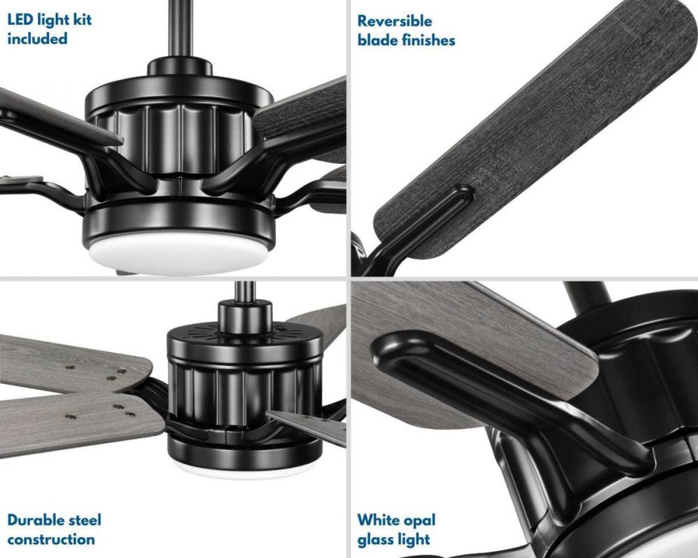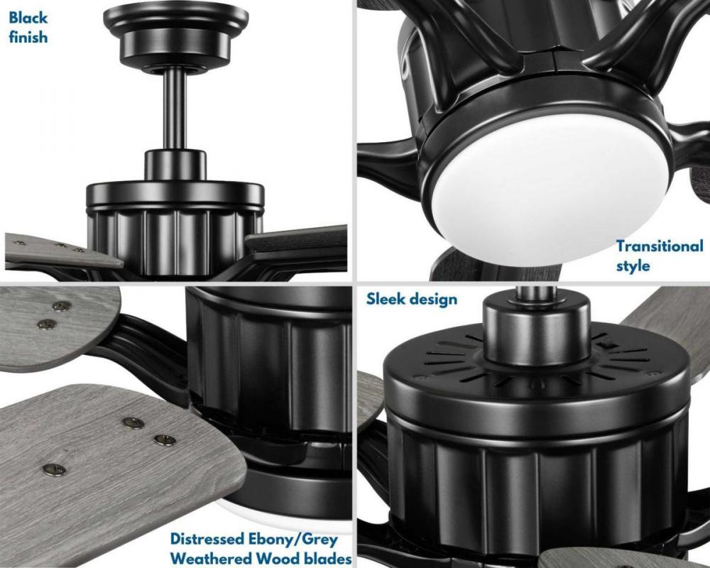 Application: Gracefully blend old and new with the Claret Collection 5-Blade Reversible Distressed Ebony/Grey Weathered Wood 54-Inch AC Motor LED Transitional Ceiling Fan ideal for any living room.;Styles: Perfect for transitional style settings.;Finish: T