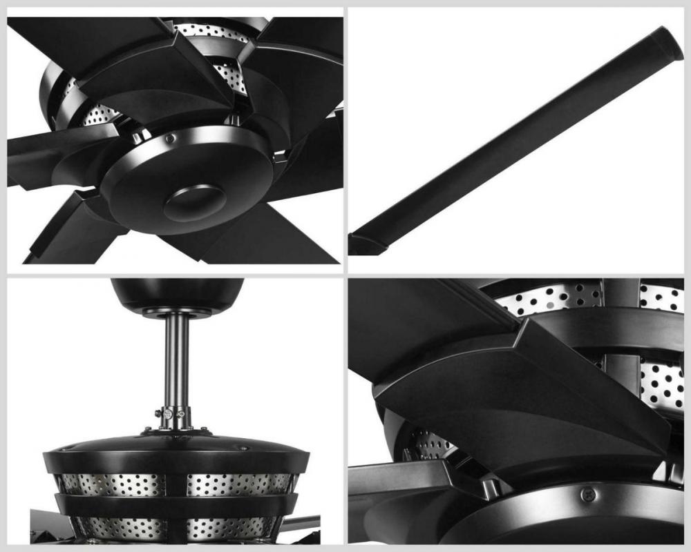Six expansive aluminum blades with decorative winglets stretch out from the center.;The fan is coated in a matte black finish with complementary highlights to create a perfect design for your home.;The hassles and headaches of the day fade away under the r