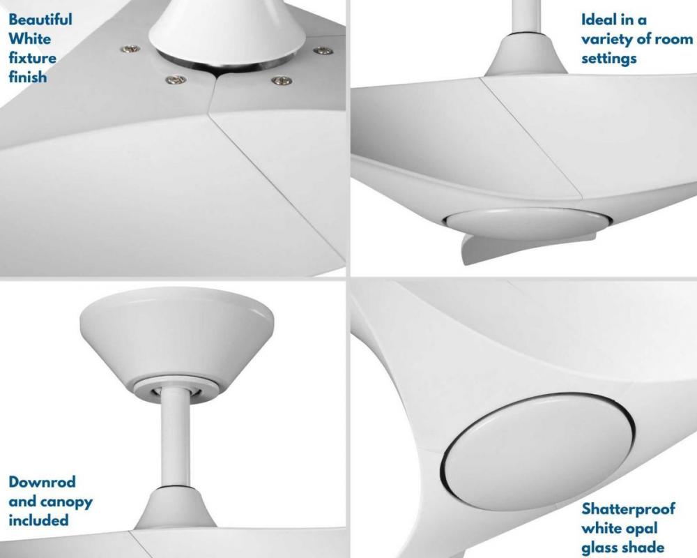 Application: Ideal for any bedroom, living room, great room, or covered porch.;Style: Perfect for transitional style settings.;Blades: Three slightly curved ABS blades are coated in a crisp matte white finish that will complement a variety of living areas.