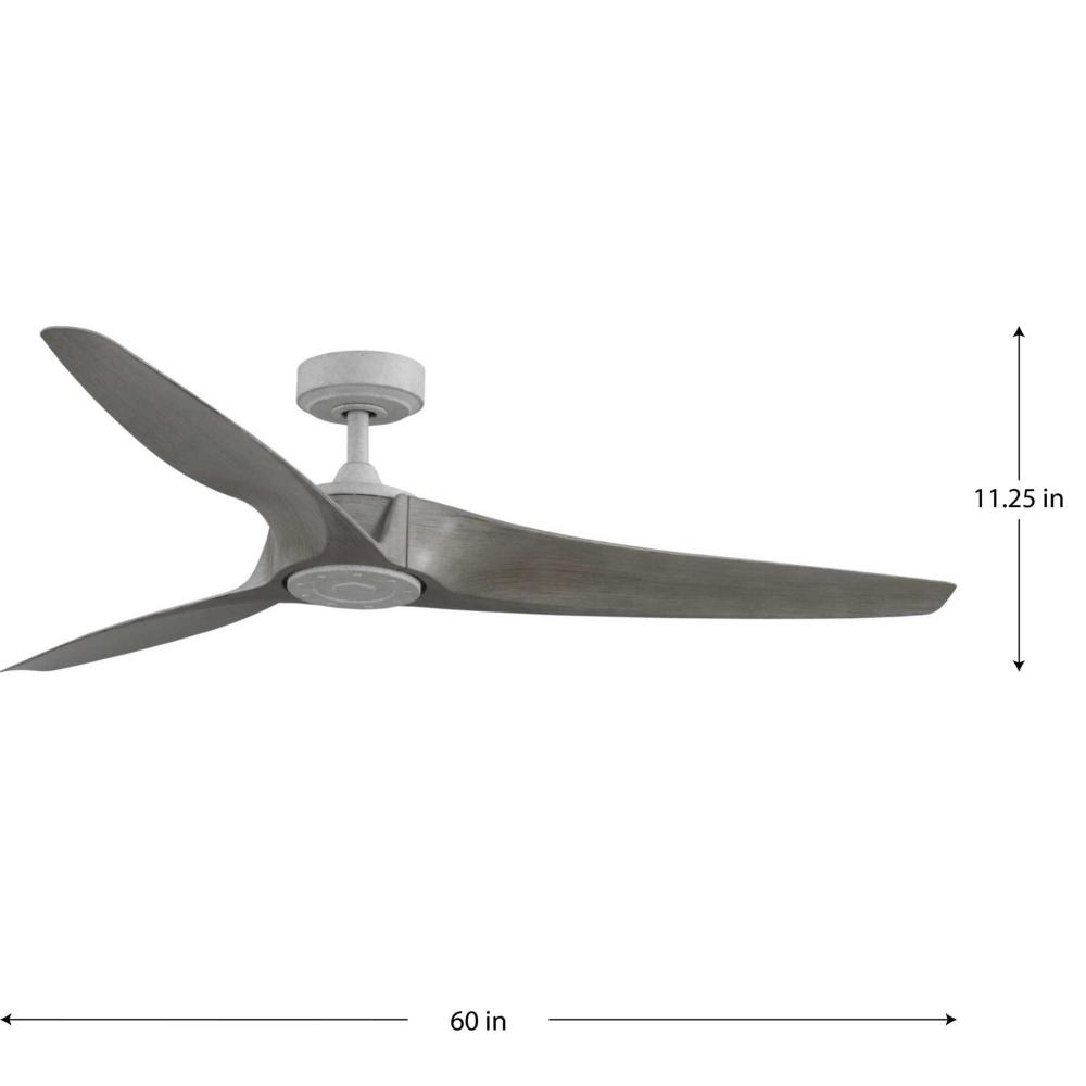 Manvel offers modern elegance in a sleek form. This 60-inch ceiling fan in a clean cottage white finish has an energy-efficient DC motor rated for indoor and outdoor applications. Three hand-finished, premium construction ABS blades coated in a distressed, salt-aged cypress finish create a stylish look that makes the ceiling fan an ideal centerpiece for living rooms, great rooms, or an outdoor covered porch. A six-speed full-function remote control is included. Not compatible with light kits.