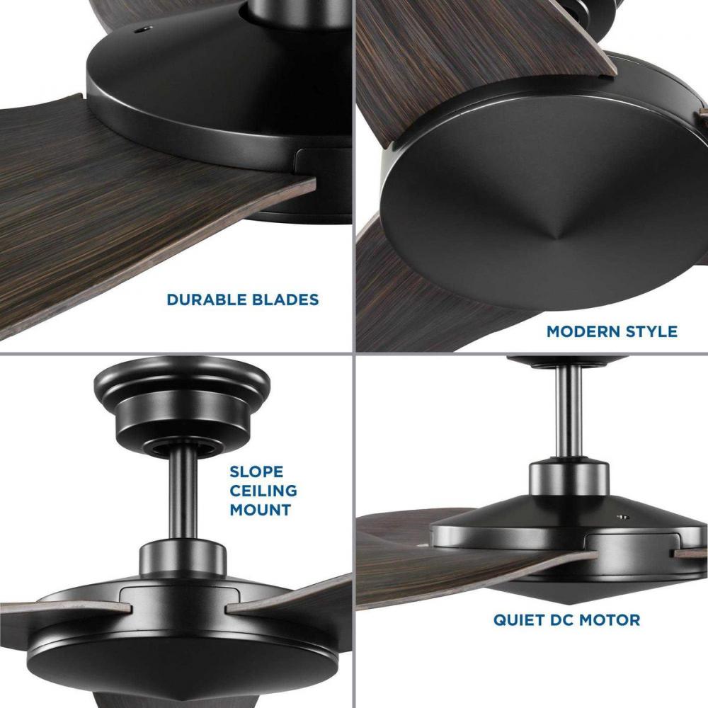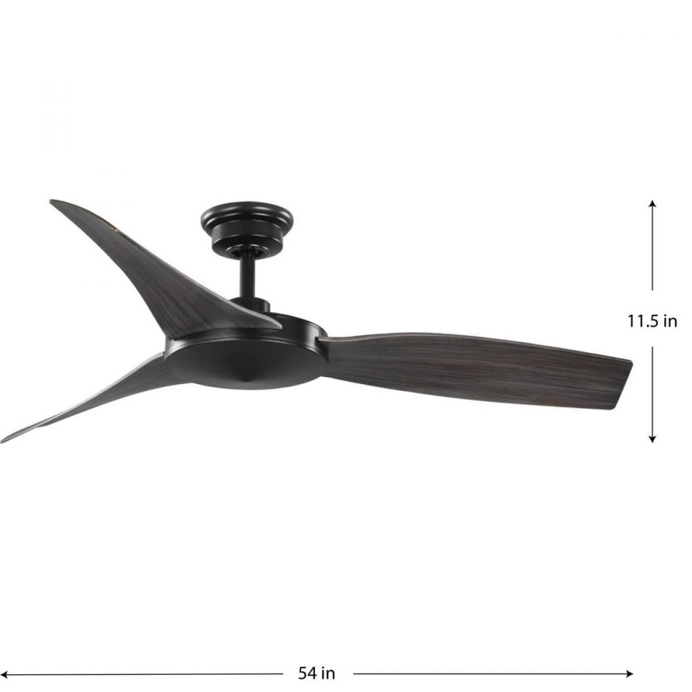 Embrace a unique and stylish 54" ceiling fan from the Spicer Collection. Three curved ABS blades with an antique black finish rotate around a classic low profile matte black center for a contemporary design that will find a home in a variety of indoor and outdoor living spaces. Energy-efficient DC motor provides added cost savings. Not light kit compatible.