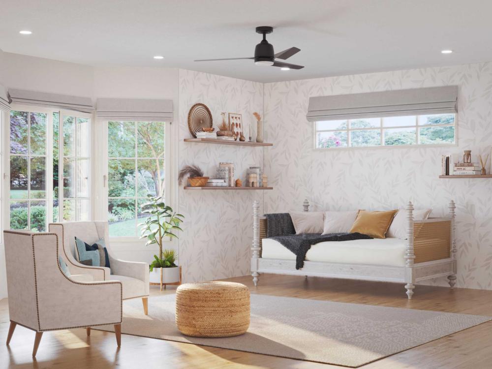 Sleek design works well in living rooms, bedrooms, great rooms, and covered patios and porches