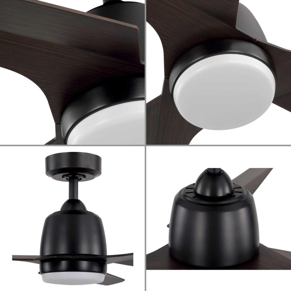 3 sleek blades finished in warm walnut extend from a housing coated in an antique bronze finish