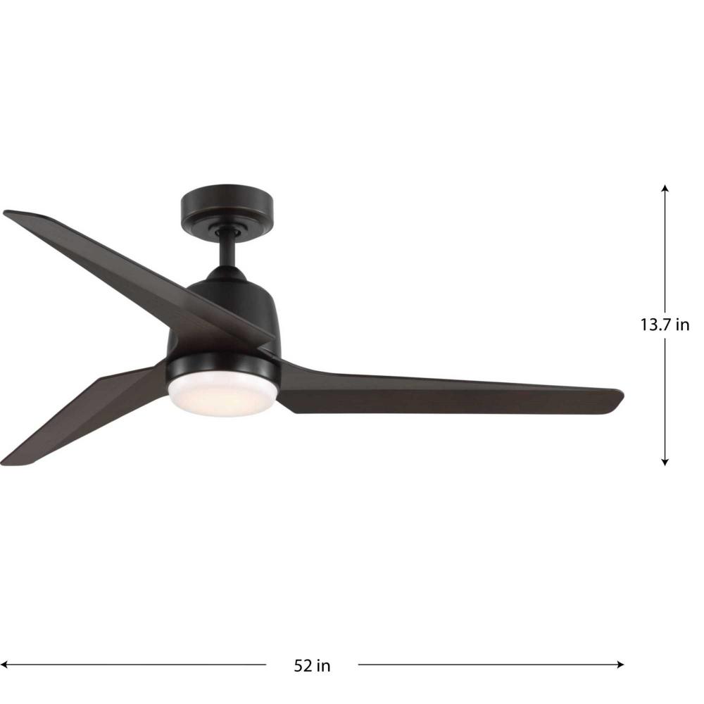 Measures 52 in. Dia x 13.7 in. H. Includes one 4.5-inch down rod. Additional length downrods are available to adjust for a variety of ceiling heights