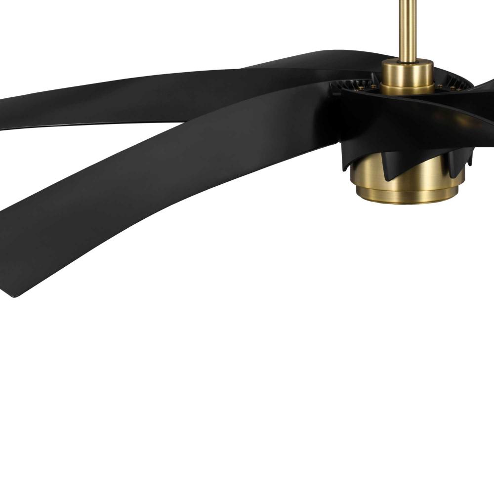 Enhance your indoor living space with the 72-inch, 6-Blade Insigna LED Ceiling Fan, a harmonious symphony of design and innovation. Measuring an impressive 72 inches, this ceiling fan is a true statement piece that commands attention. Its unique windmill-style ABS blades attached to a luxe metallic housing offer a fusion of contemporary aesthetics and innovative engineering. Coated in a beautiful Vintage Brass finish with Matte Black Blades, this sleek fan effortlessly creates a breathtaking visual impact. LED light kit is included and pairs well with the whisper-quiet DC motor. A full-function remote control is included.