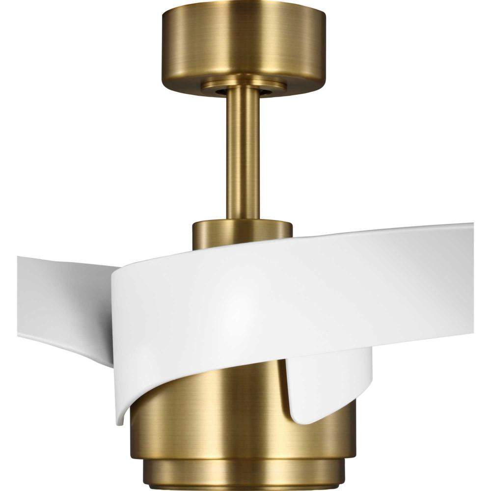 Enhance your indoor living space with the 60-inch, 3-Blade Insigna LED Ceiling Fan, a harmonious symphony of design and innovation. Its unique swoop-style ABS blades attached to a luxe metallic housing offer a fusion of contemporary aesthetics and innovative engineering. Coated in a beautiful Vintage Brass finish with Matte White Blades, this sleek fan effortlessly creates a breathtaking visual impact. LED light kit is included and pairs well with the whisper-quiet DC motor creates cooling breezes. Control the fan with the included, full-function remote.