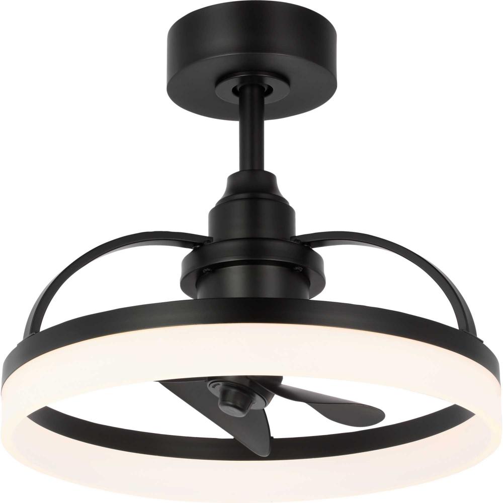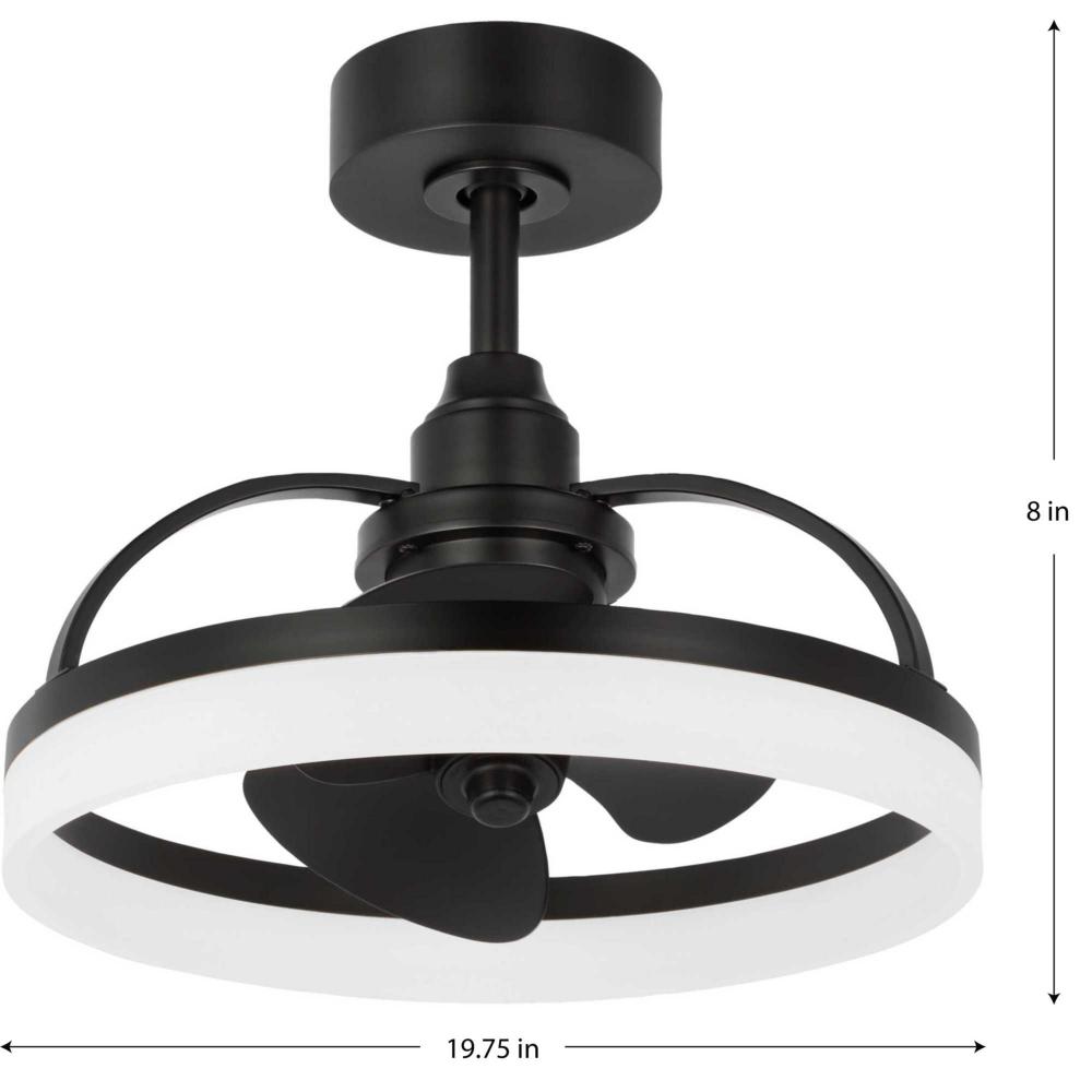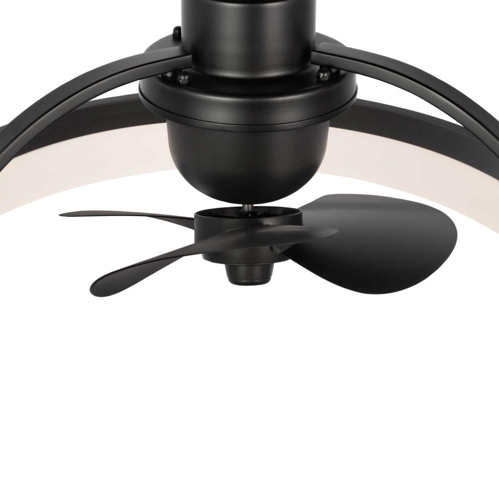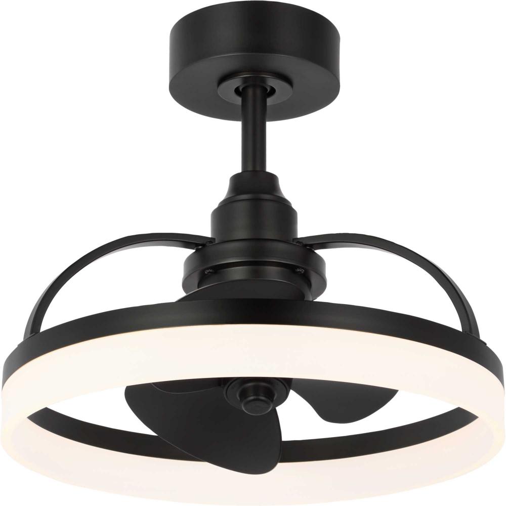 Crafted from swirling bands of Matte Black and creamy polished acrylic, the 19.56-inch Shear LED fandelier is a masterpiece that elevates both form and function to new heights. A trio of Matte Black fan blades are powered by a quiet, oscillating DC motor that effortlessly distributes air in a 36-degree rotation throughout indoor and covered outdoor rooms. Innovative, linear dimmable LEDs softly illuminate the surrounding space. A full-function remote control and wall bracket are included. This fan is part of the new Oscillarâ„¢ Collection of ceiling fandeliers, featuring rings of integrated LED illumination and a trio of blades powered by a silent oscillating DC motor that features a 360-degree rotation and six speeds, delivering maximum air distribution in every direction throughout a room.