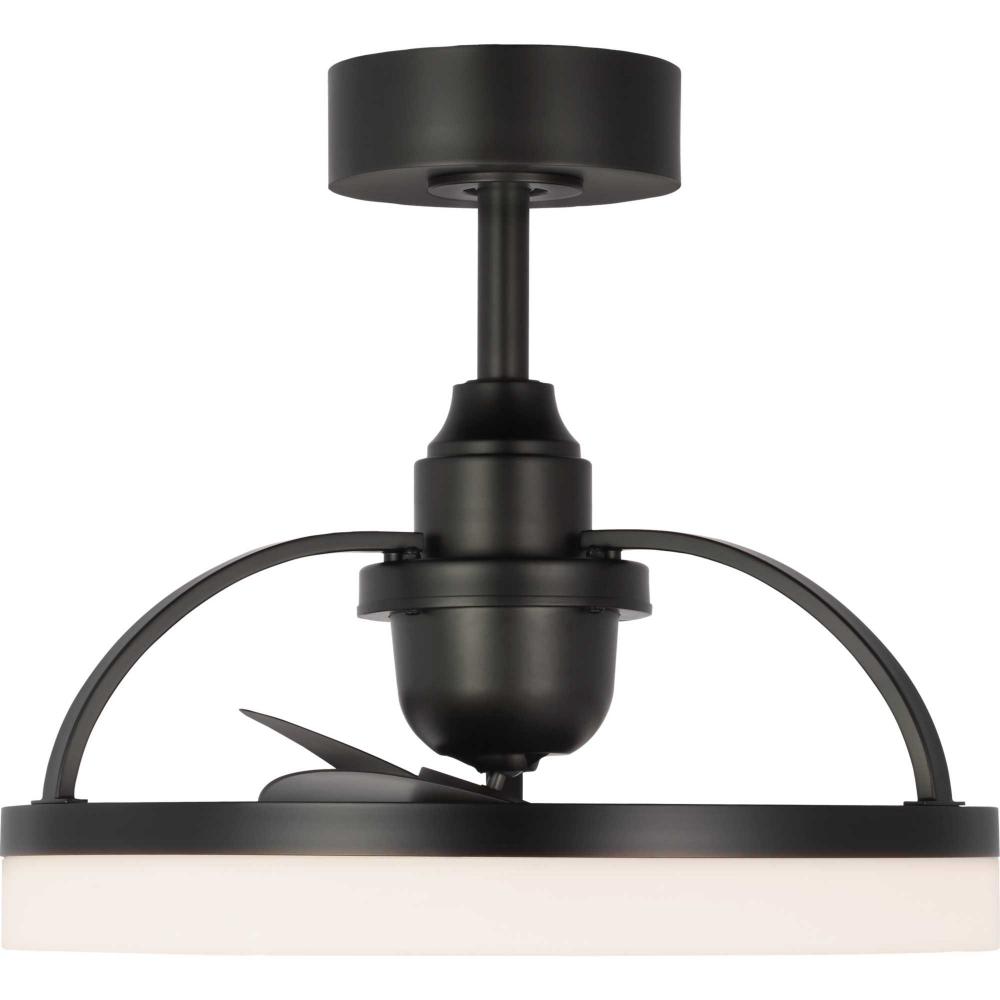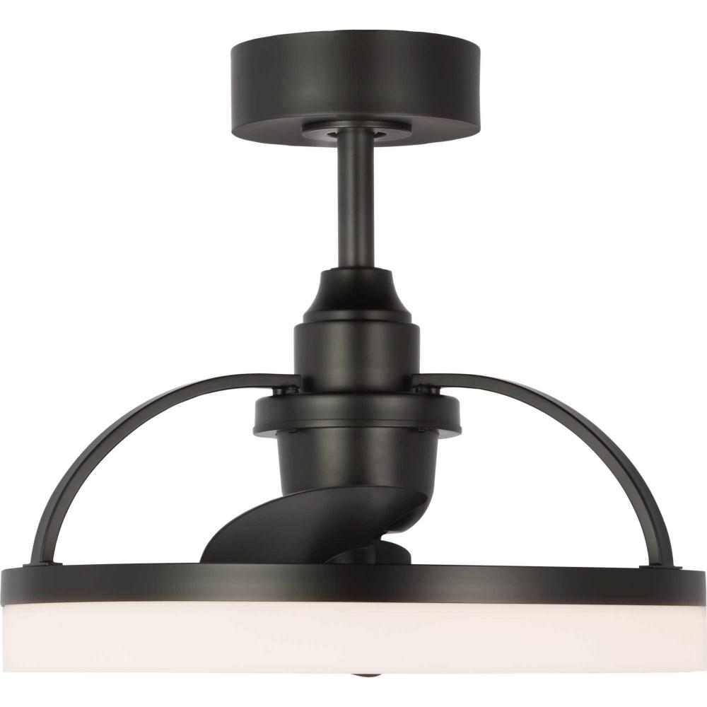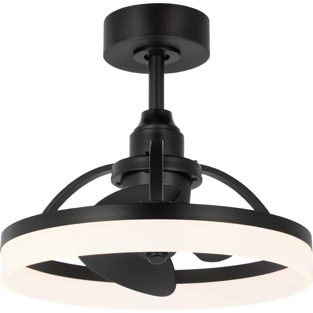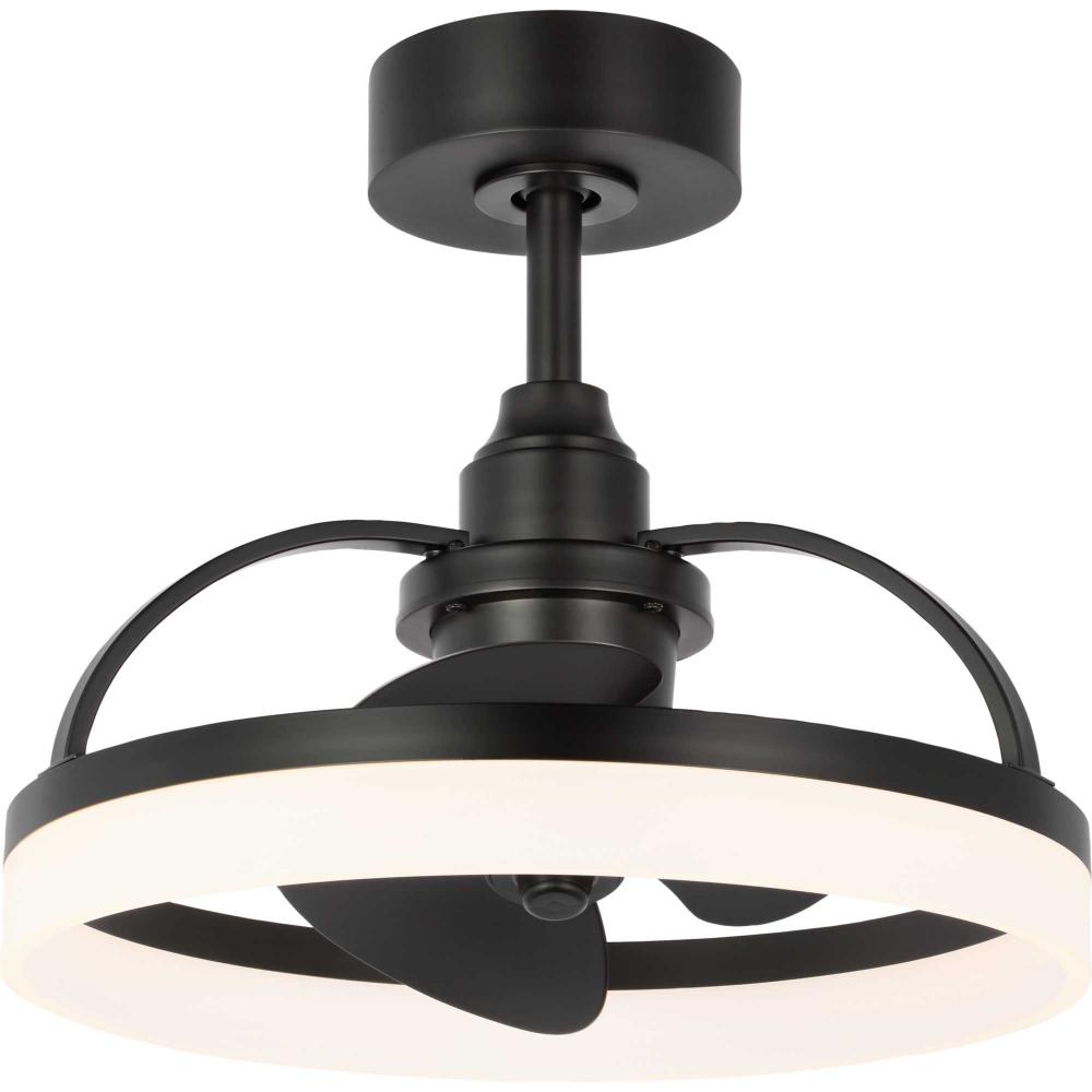 Crafted from swirling bands of Matte Black and creamy polished acrylic, the 19.56-inch Shear LED fandelier is a masterpiece that elevates both form and function to new heights. A trio of Matte Black fan blades are powered by a quiet, oscillating DC motor that effortlessly distributes air in a 36-degree rotation throughout indoor and covered outdoor rooms. Innovative, linear dimmable LEDs softly illuminate the surrounding space. A full-function remote control and wall bracket are included. This fan is part of the new Oscillarâ„¢ Collection of ceiling fandeliers, featuring rings of integrated LED illumination and a trio of blades powered by a silent oscillating DC motor that features a 360-degree rotation and six speeds, delivering maximum air distribution in every direction throughout a room.