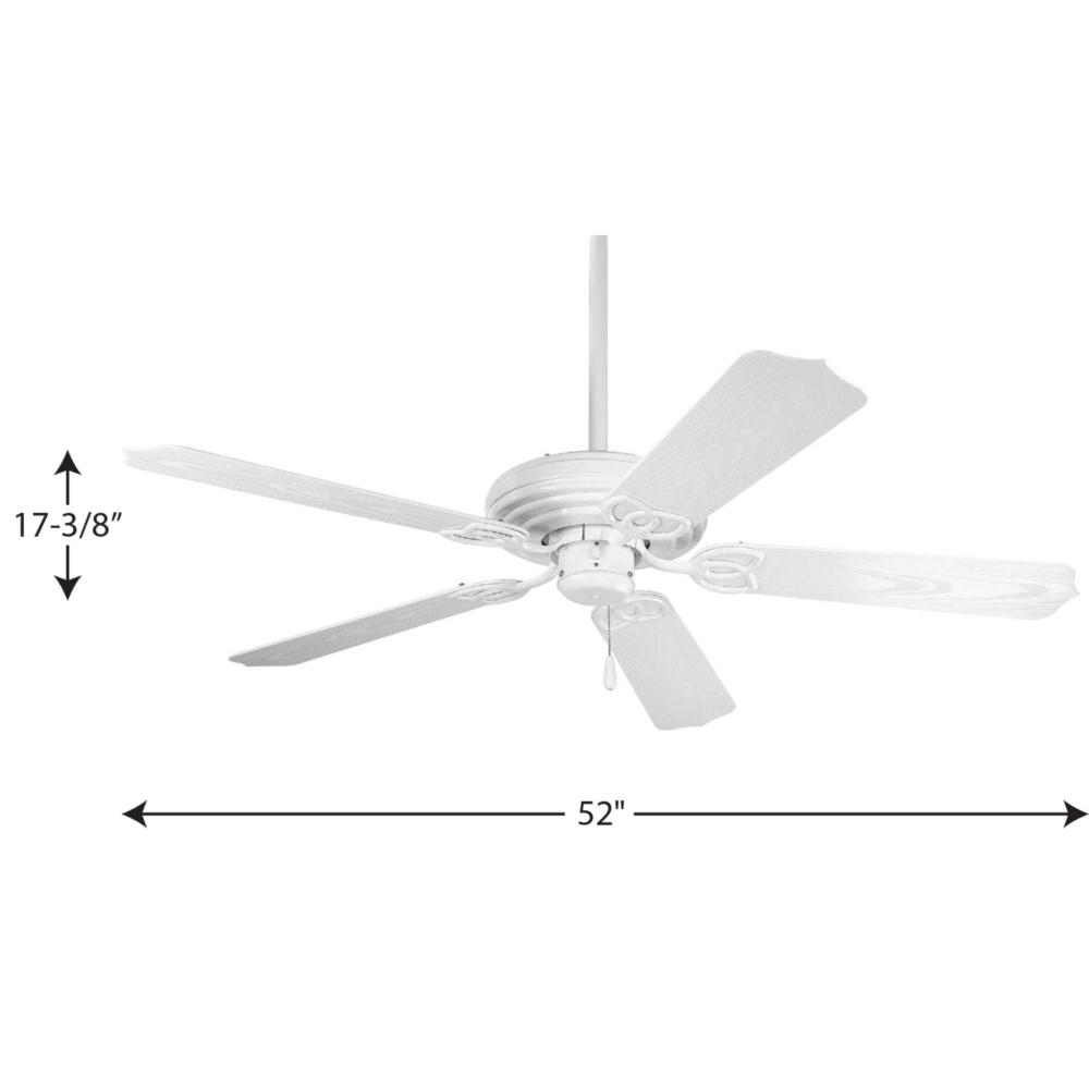 52" AirPro ceiling fan features five ABS blades;White blades with ABS all weather blade material;AirPro ceiling fan with White finish;Pull chain is chrome with a white fob;Indoor/outdoor ceiling fan ideal for use on decks, porches, great rooms, living