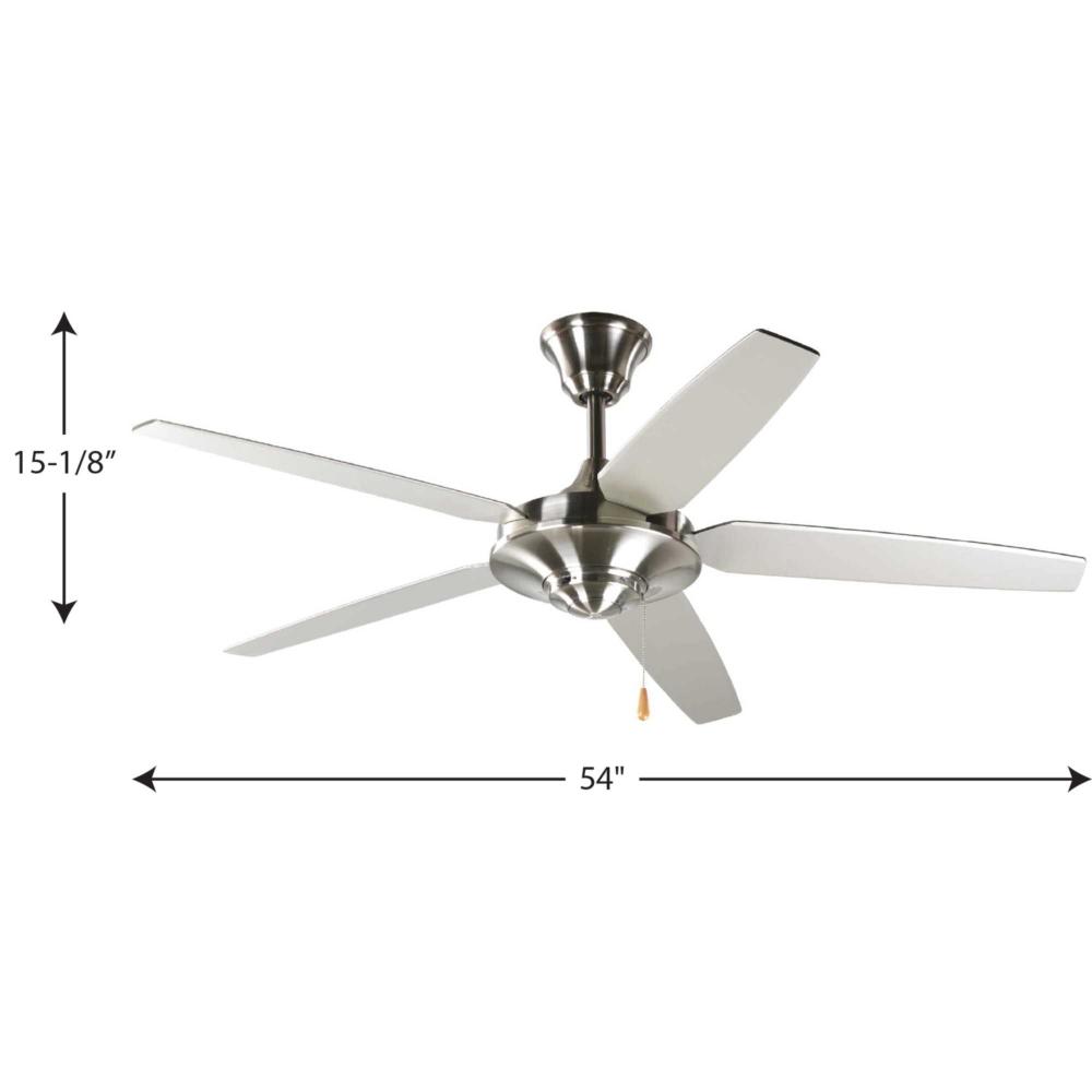54" AirPro Collection ceiling fan features five reversible blades;Reversible Silver/Natural Cherry blades;AirPro Collection ceiling fan with Brushed Nickel finish;Pull chain is chrome with a maple fob;Indoor ceiling fan ideal for use in great rooms, li