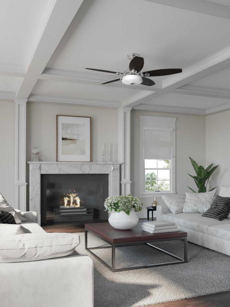 Five-blade 54" Graceful ceiling fan features an LED light source, offering both form and function with energy- and cost-savings benefits;Graceful ceiling fan features reversible Silver/Toasted Oak with a Polished Chrome finish;Indoor ceiling fan ideal