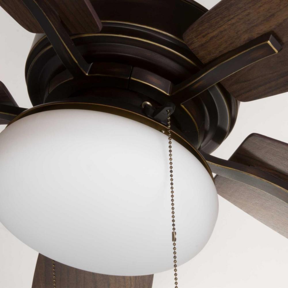 52" Billows collection ceiling fan features an LED light source, offering both form and function with energy- and cost-savings benefits;Five reversible American Walnut/Cherry blades;Billows collection ceiling fan with Antique Bronze finish;Pull chain i