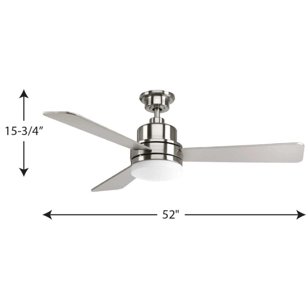 52" Trevina ceiling fan features an LED light source, offering both form and function with energy- and cost-savings benefits;Trevina fan features three silver fan blades and Brushed Nickel finish;The light kit contains a etched opal glass shade and is