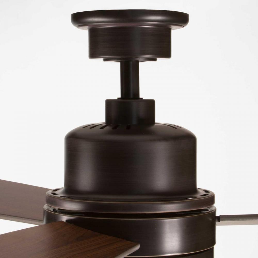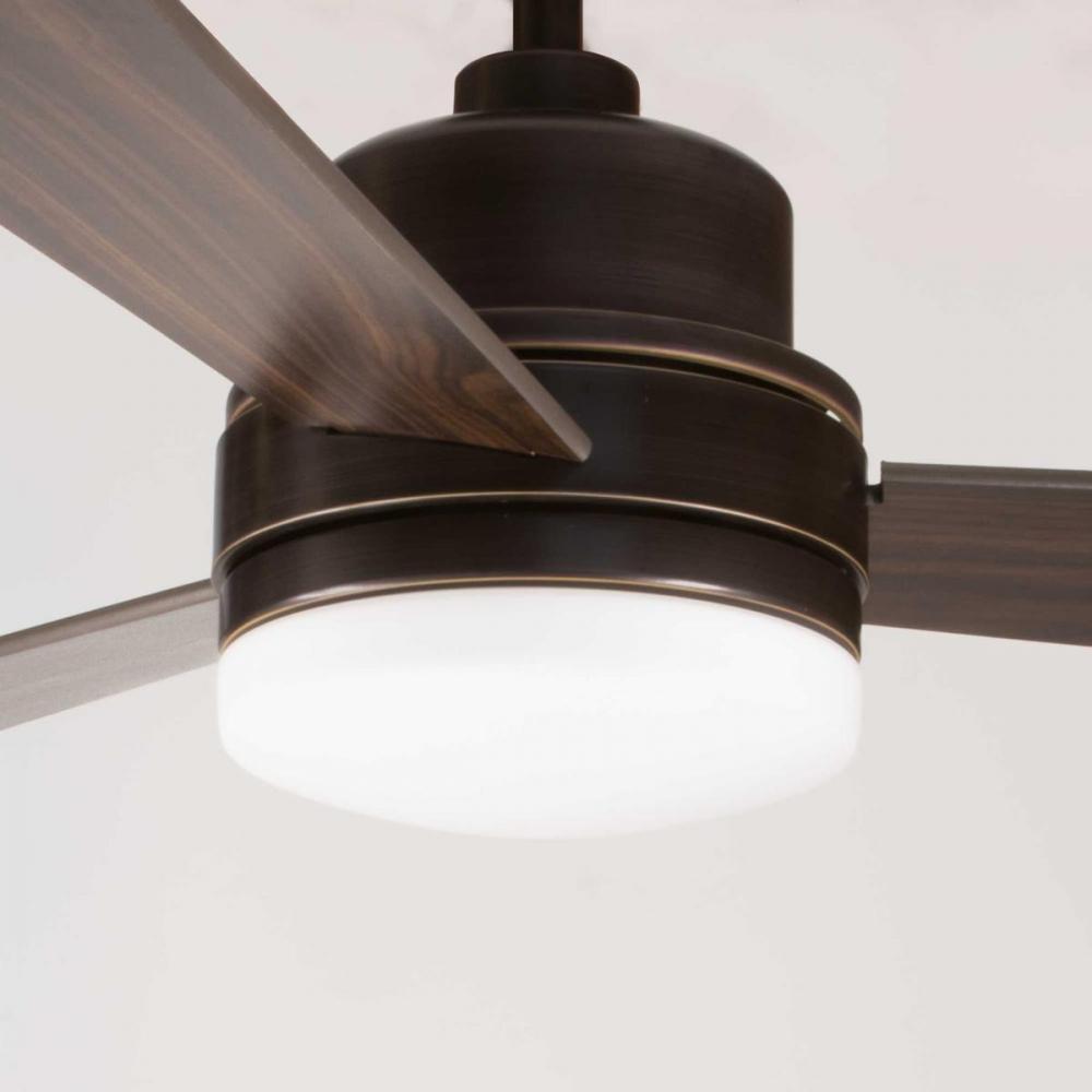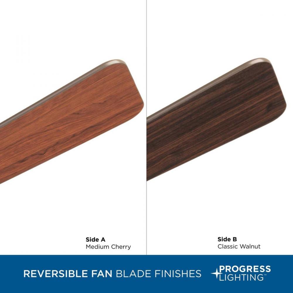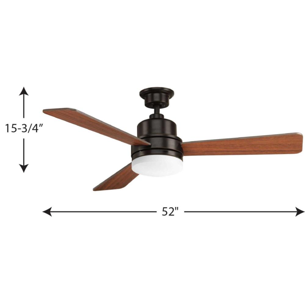 52" Trevina ceiling fan features an LED light source, offering both form and function with energy- and cost-savings benefits;Trevina fan features three reversible Medium Cherry/Walnut fan blades and Antique Bronze finish;The light kit contains a etched