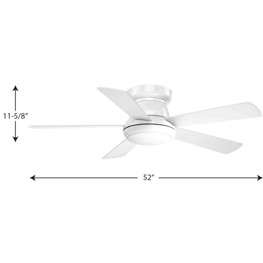 52" Vox hugger ceiling fan features an LED light source, offering both form and function with energy- and cost-savings benefit;A shatterproof, white opal shade contains a 17W dimmable, 3000K LED module with 90CRI and 1400 lumens (source);Indoor celling