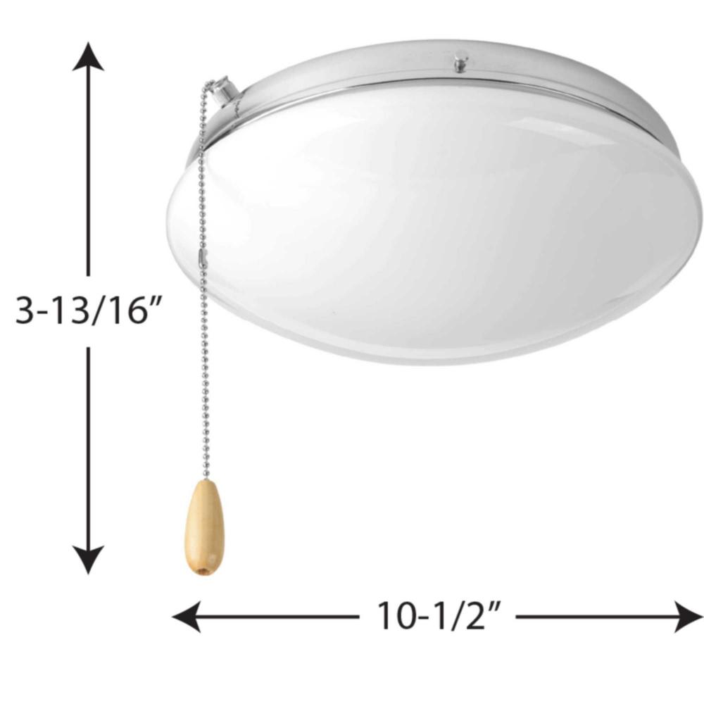 Add style and light to your ceiling fan with this universal fan light kit.;Polished Chrome finish;Opal glass diffuser ideal for lighting in a bedroom.;Universal mount for Progress and other fans (threaded adapter included);Includes two 3000K, 800 lumen eac