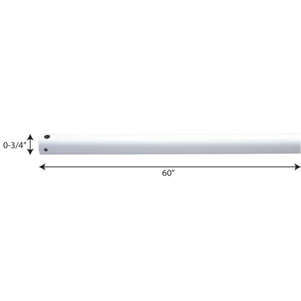 3/4 In. x 60 In. downrod for use with any Progress Lighting ceiling fan. Use of a fan downrod positions your ceiling fan at the optimal height for air circulation and provides the perfect solution for installation on high cathedral ceilings or in great rooms. Refer to the selection guide for recommended downrod lengths based upon your ceiling height. White finish.