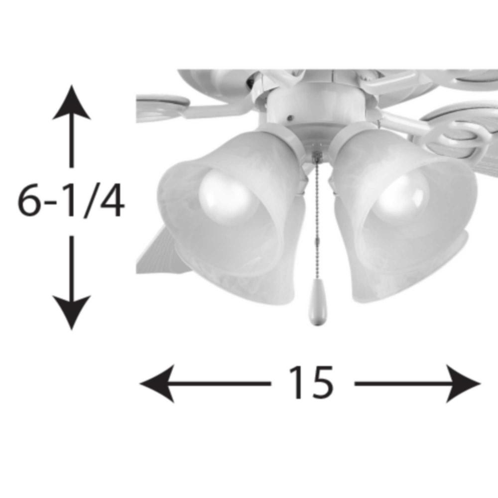 Alabaster style white washed glass shades;White finish.;Good for use with Progress Lighting ceiling fans: P2500, P2501, P2524 and P2525 ceiling fans and P2502 indoors.;Innovative spring clip glass attachment system- eliminates hardware.;Includes four 3000K