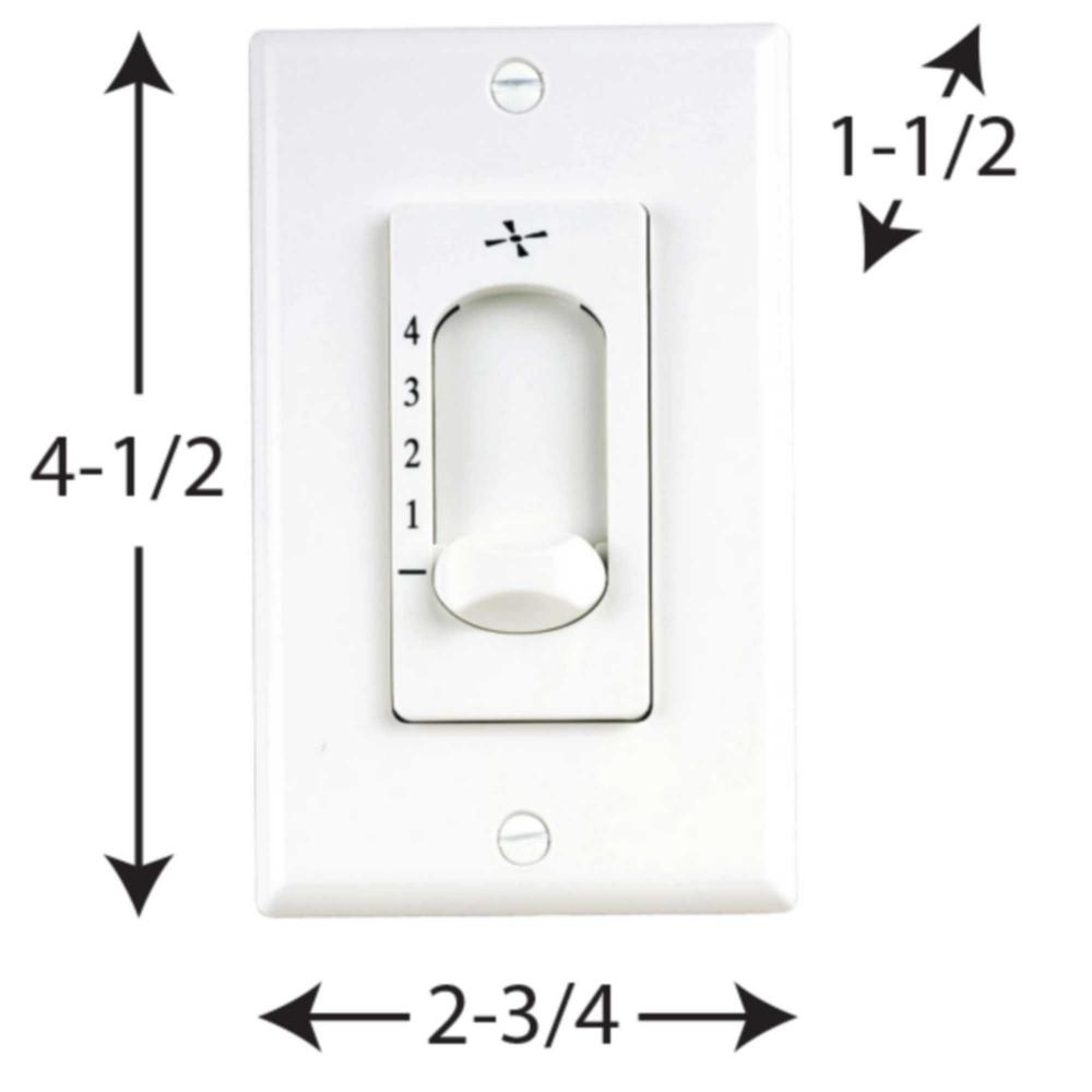 White color;Provides convenient operation for fans with pull-chains.;Four-speed control (1=Fastest, 4=Slowest).;Use with or in place of hand-held remote included with fans that have a downlight cover.;Switchplate cover is included for mounting.;Includes wi