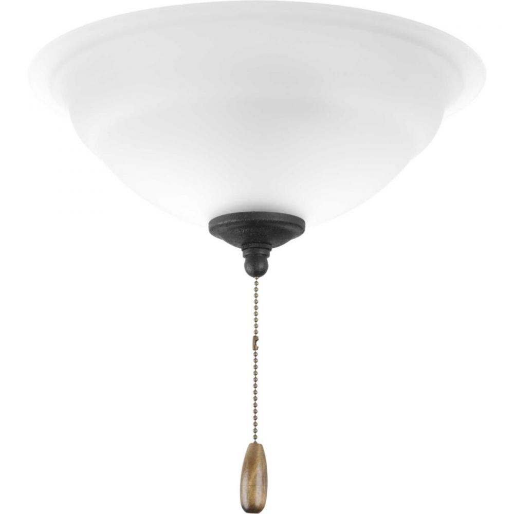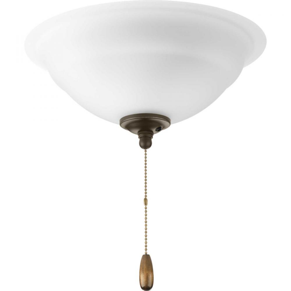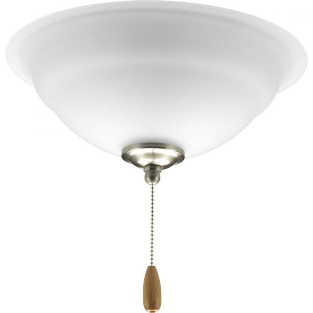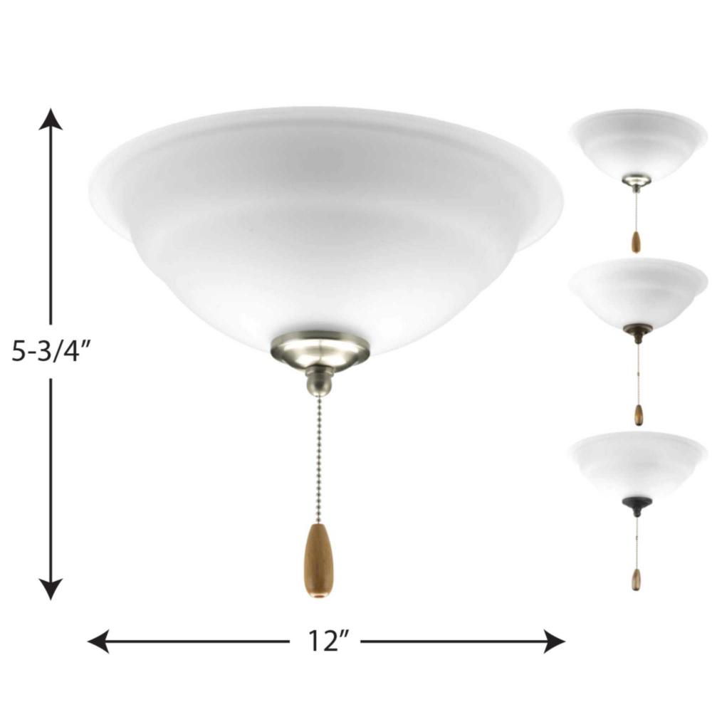 Add style and light to your ceiling fan with this universal fan light kit.;White etched glass bowl.;Finials included are -09 Brushed Nickel, -20 Antique Bronze and -80 Forged Black.;Quick-connect wiring to any progress fan that accept an accessory light.;I
