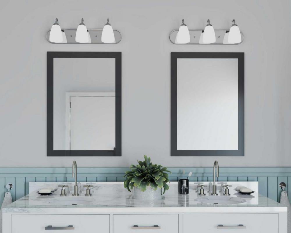 Ideal for a bathroom or great room;Perfect for traditional and transitional style settings;Crisp polished chrome finish;Elegant etched glass shades;Mount the light fixture facing up or down;Use 3 medium base bulbs that are sold separately (100 W max - LED/