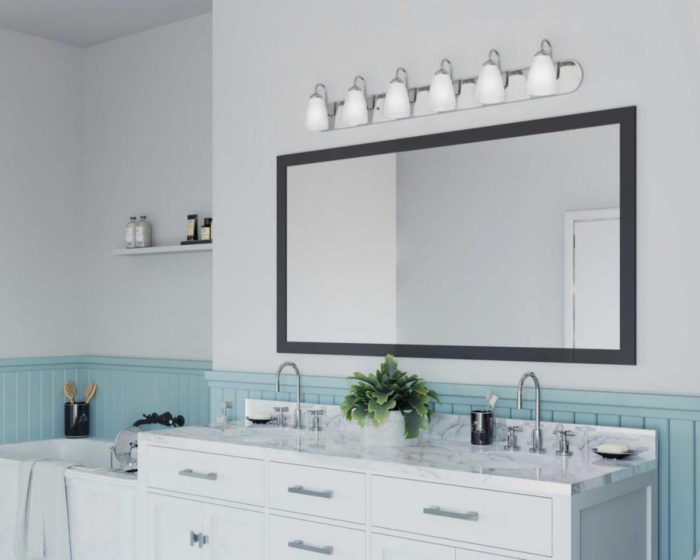Gather possesses a smart simplicity to complement today's home. This six-light bath bracket contains etched glass shades which add distinction and provide pleasing illumination to your room. Featuring a stunning Polished Chrome finished frame, this collection allows you to decorate an entire home with confidence and style.