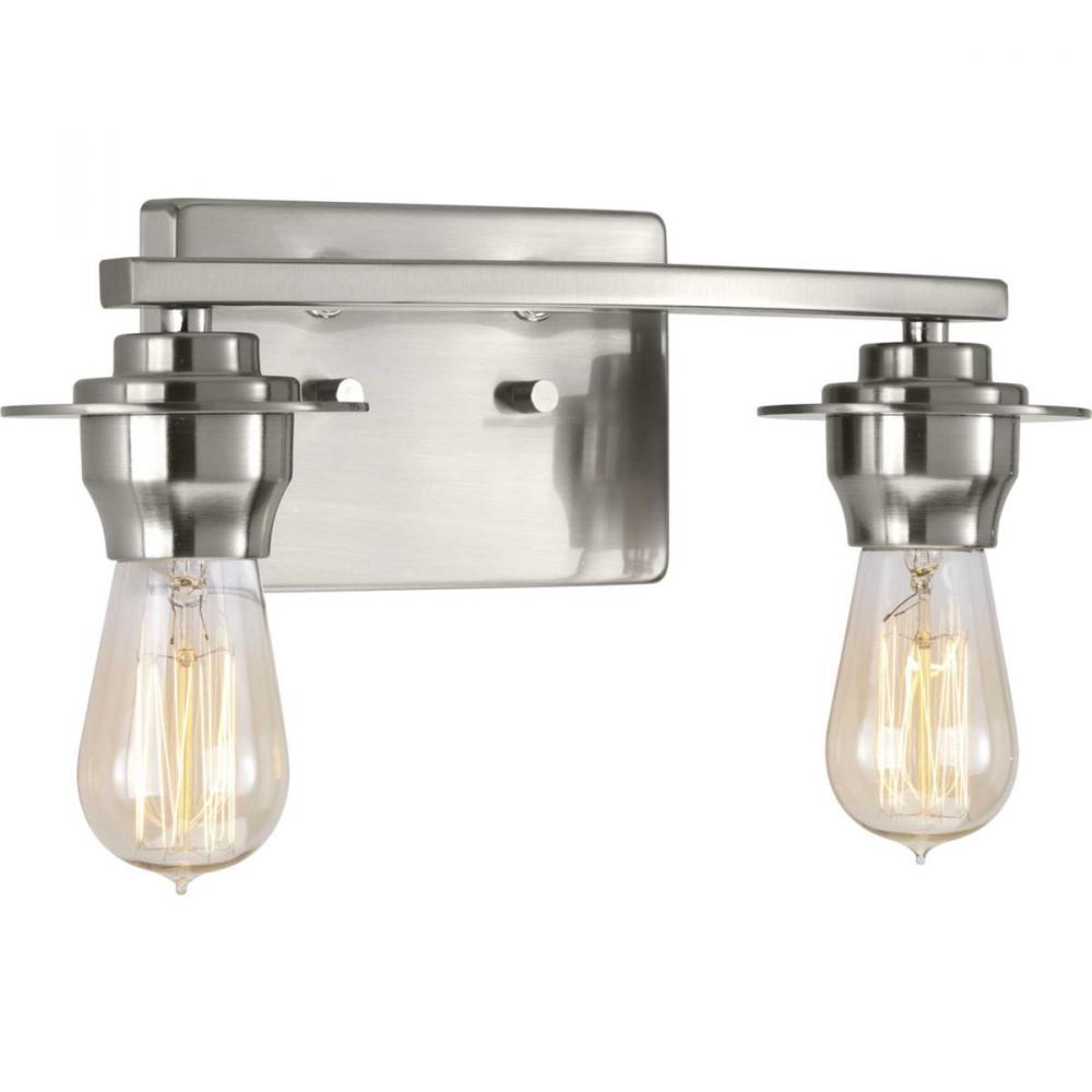 Ideal for a bathroom and powder room.;Perfect for farmhouse and urban industrial style settings;Beautiful brushed nickel finish;Glass accessory shades available in clear or frosted seeded finishes;Mount the light fixture facing up or down;Use 2 medium base