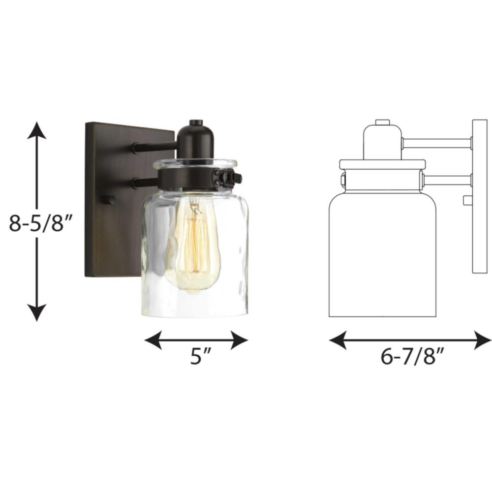 Ideal for a bathroom, hallway, or foyer;Perfect for farmhouse and urban industrial style settings;Handsome antique bronze finish;Crisp clear glass shade;Mount the light fixture facing up or down;Use 1 medium base bulb that is sold separately (100 W max - L
