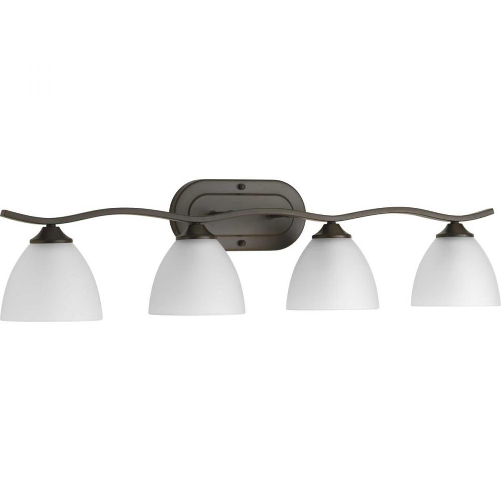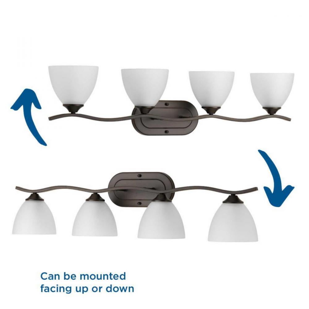 Ideal for a bathroom;Perfect for traditional and transitional style settings;Handsome antique bronze finish;Elegant etched glass shades;Mount the light fixture facing up or down;Use 4 medium base bulbs that are sold separately (100 W max - LED/CFL/incandes