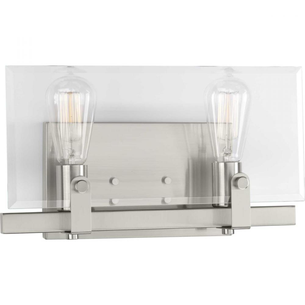 Ideal for a bathroom, dining room, hallway, or foyer;Perfect for luxe, modern, and urban industrial style settings;Beautiful brushed nickel finish;Crisp clear beveled glass shade;Mount the light fixture facing up or down;Use 2 medium base bulbs that are so