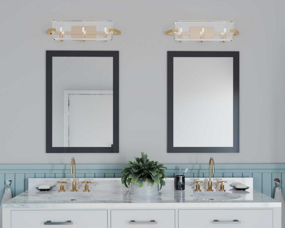 Ideal for a bathroom;Perfect for luxe, mid-century modern, and modern style settings;Golden brushed bronze finish;Crisp clear beveled glass shade;Includes installation instructions and mounting hardware;Use 3 candelabra base bulbs that are sold separately