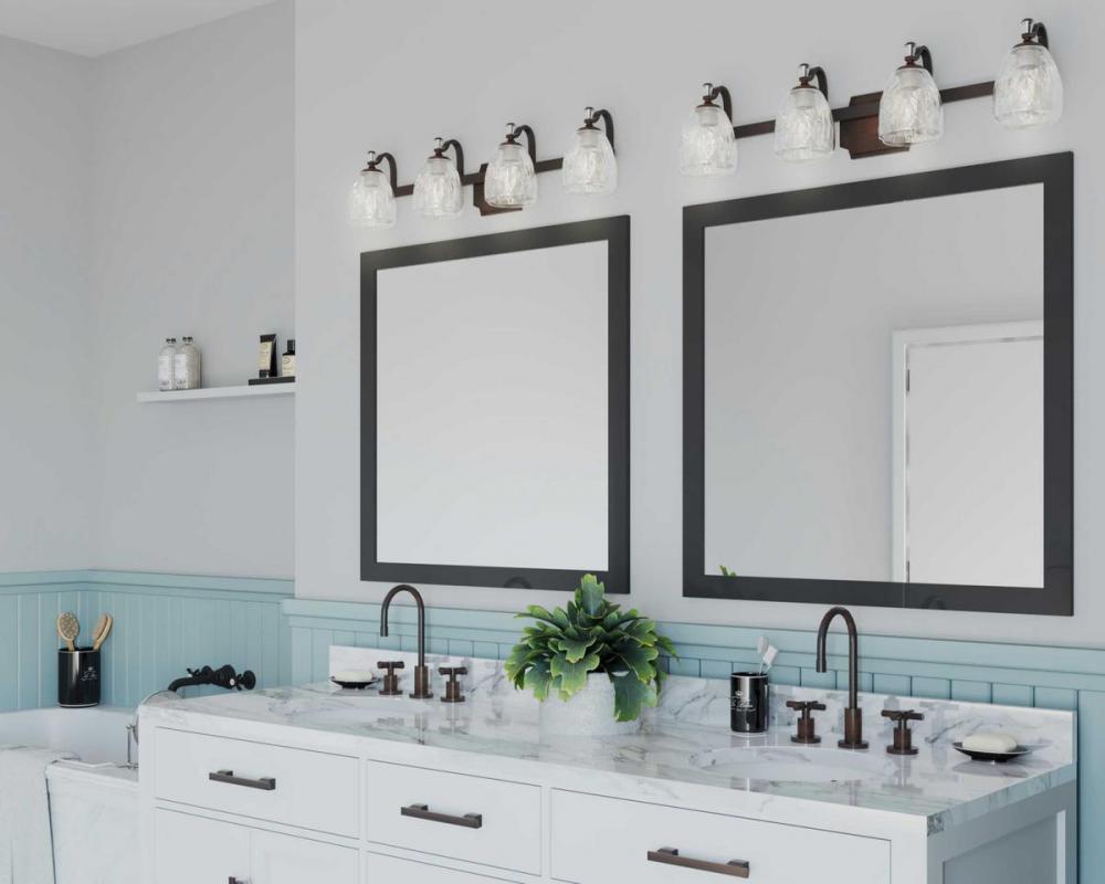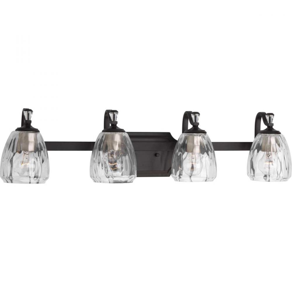 Ideal for a bathroom;Perfect for luxe, new traditional, traditional, and transitional style settings;Handsome antique bronze finish with champagne bronze accents;Elegant clear water glass shades;Mount the light fixture facing up or down;Use 4 medium base b
