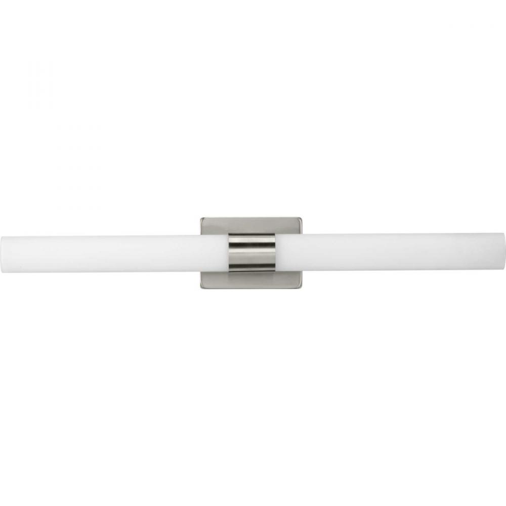 Enjoy This Bath Fixture'S Classic Forms With Crisp, Contemporary Updates. A Silky, Brushed Nickel Finish Coats A Simple Backplate That Anchors The Light Fixture In Place. An Elegant Etched White Glass Shade Shaped In A Thin Cylinder Stretches Horizontally Across The Design For A Clean, Modern Demeanor.