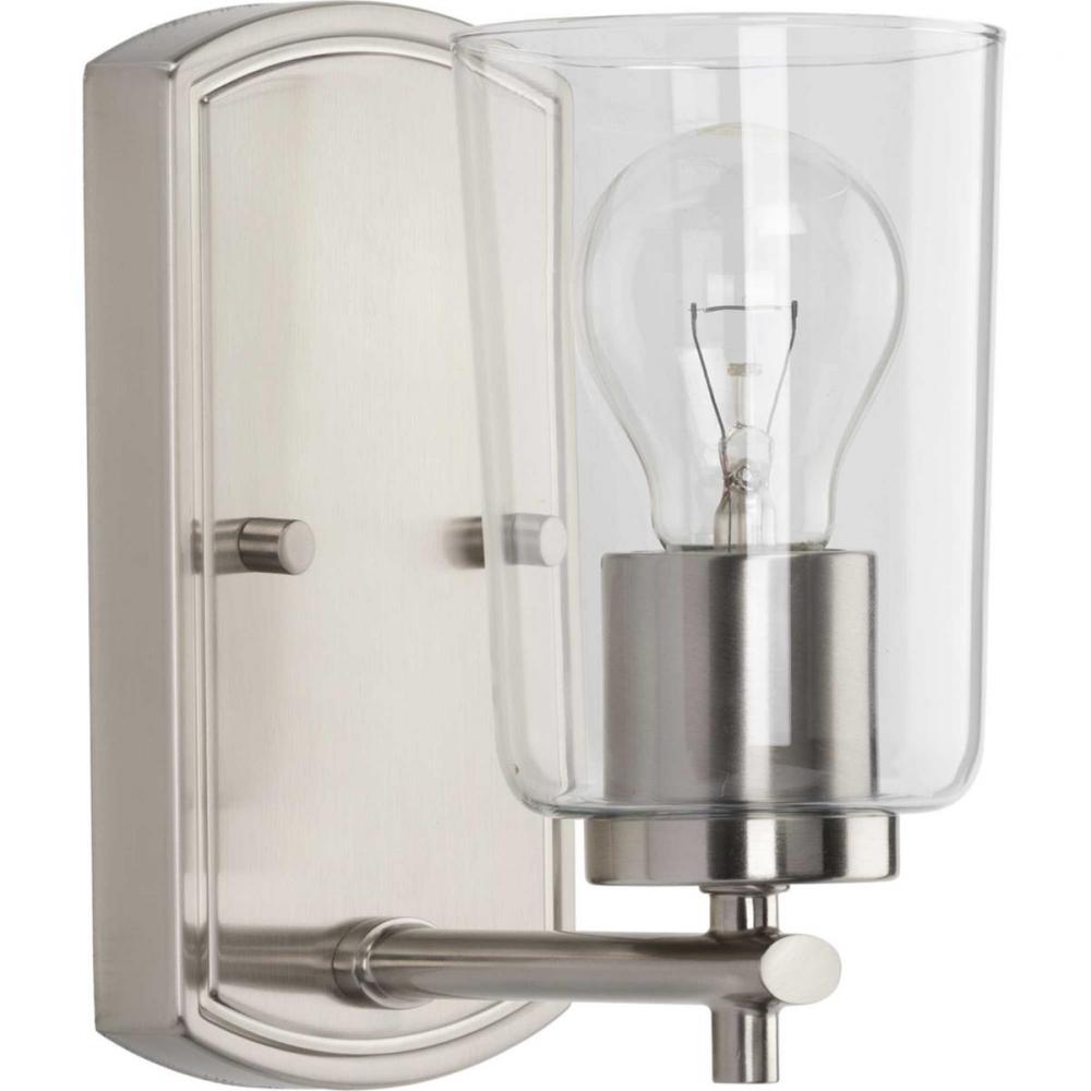 Ideal for a bathroom, hall, or foyer;Perfect for new traditional, traditional, and transitional style settings;Beautiful brushed nickel finish;Crisp clear glass shade;Mount the light fixture facing up or down;Use 1 medium base bulb that is sold separately