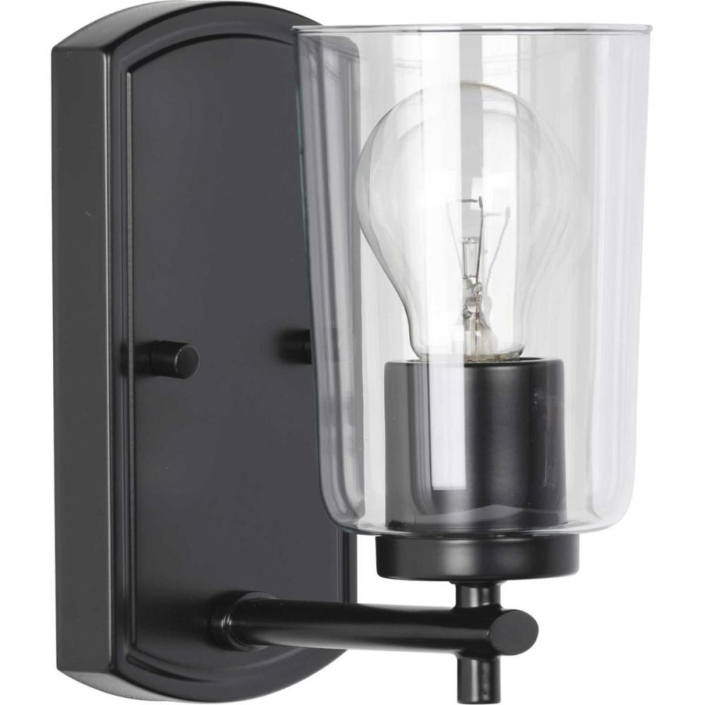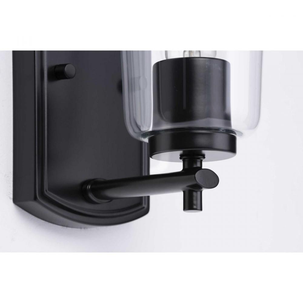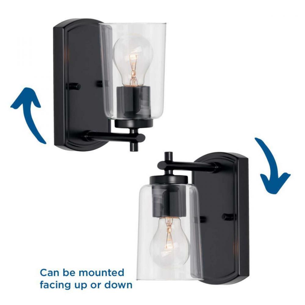 Ideal for a bathroom, hall, or foyer;Perfect for new traditional, traditional, and transitional style settings;Classic matte black finish;Crisp clear glass shade;Mount the light fixture facing up or down;Use 1 medium base bulb that is sold separately (60 W