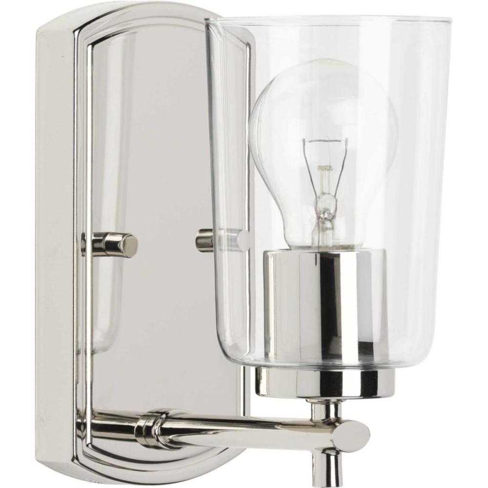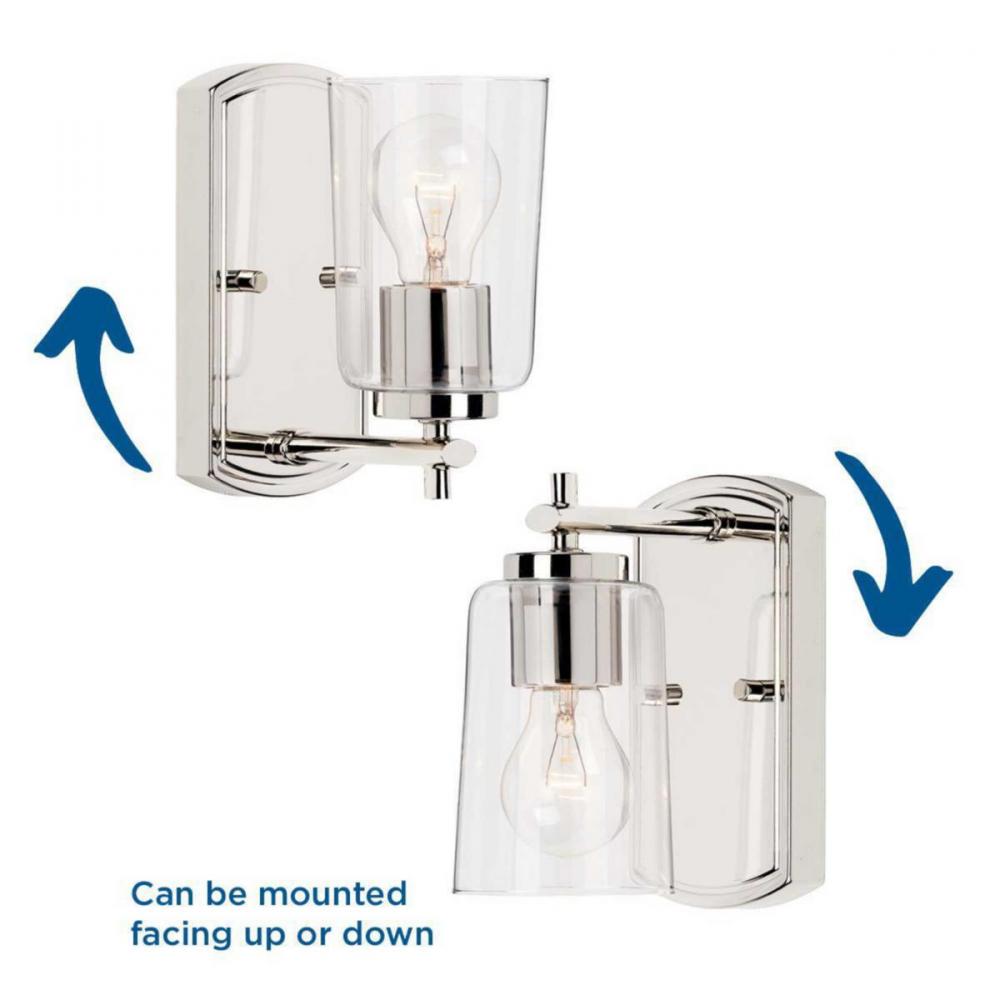 Ideal for a bathroom, hall, or foyer;Perfect for new traditional, traditional, and transitional style settings;Subtle polished nickel finish;Crisp clear glass shade;Mount the light fixture facing up or down;Use 1 medium base bulb that is sold separately (6