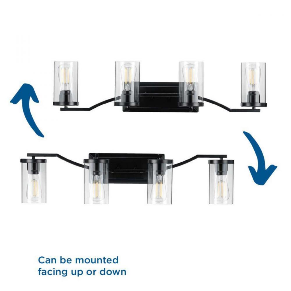 Manifest a swoon-worthy lighting experience with the stunning blend of modern and traditional styles in this one-of-a-kind light fixture. Square tubing with clean, sharp angles demand your attention and appreciation. A beautiful black finish coats a handsome rectangular backplate. Striking vintage light sockets boast their bold yet simple demeanors within the safety of sophisticated clear glass shades.