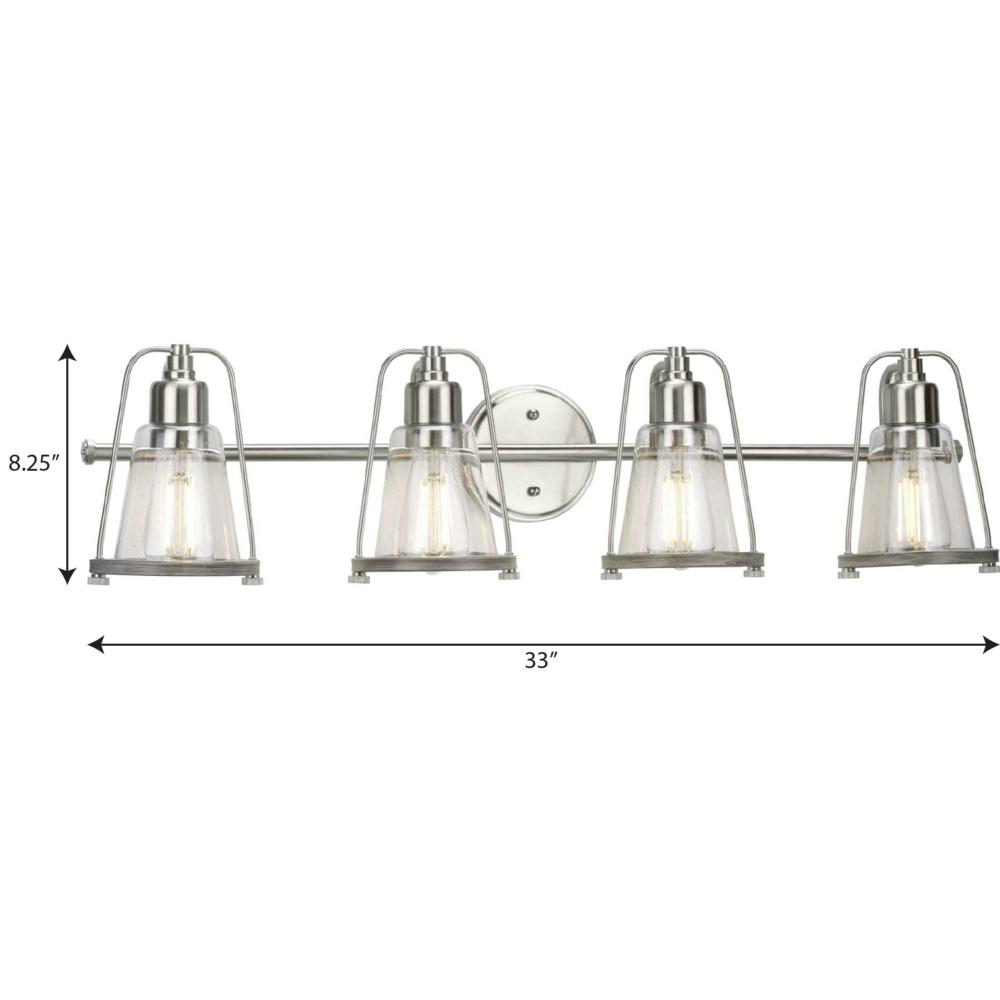 Application: Create a relaxing seaside haven with the Conway Collection 4-Light Brushed Nickel Clear Seeded Farmhouse Bath Vanity Light ideal for any entryway, hallway, foyer, bedroom, sitting room, living room, or bathroom.;Style: Perfect for farmhouse an