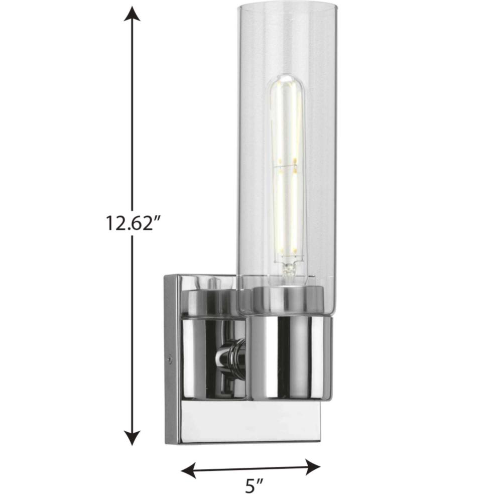Application: Embrace minimalist simplicity with the Clarion Collection 1-Light Polished Chrome Clear Glass Modern Bath Vanity Light ideal for any entryway, hallway, foyer, bedroom, sitting room, or bathroom.;Style: Perfect for contemporary, modern, and tra
