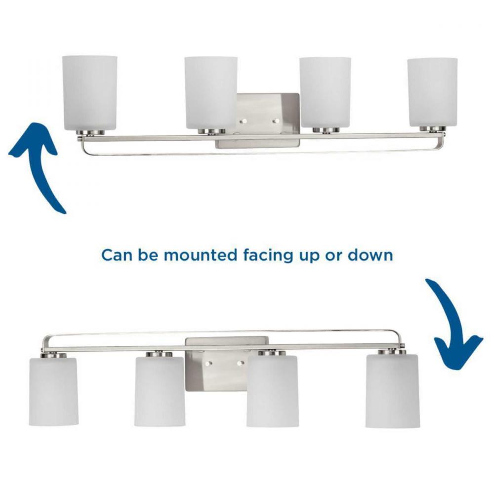 APPLICATION: Distinguish your home with clean modern design with the League Collection Four-Light Brushed Nickel and Etched Glass Contemporary Bath Vanity Light ideal for any bathroom.;STYLES: Perfect for modern farmhouse and contemporary style settings.;F