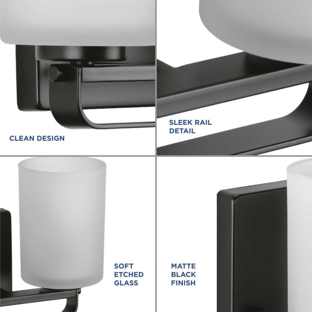 APPLICATION: Distinguish your home with clean modern design with the League Collection Four-Light Matte Black and Etched Glass Contemporary Bath Vanity Light ideal for any bathroom.;STYLES: Perfect for modern farmhouse and contemporary style settings.;FINI
