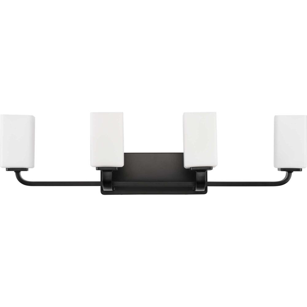 A contemporary urban aesthetic and warm ambient lighting create a relaxed atmosphere for the bath;An elegant combination of etched opal glass, trendy matte black finish and contemporary styling make this wall light ideal for modern, mid-century modern and