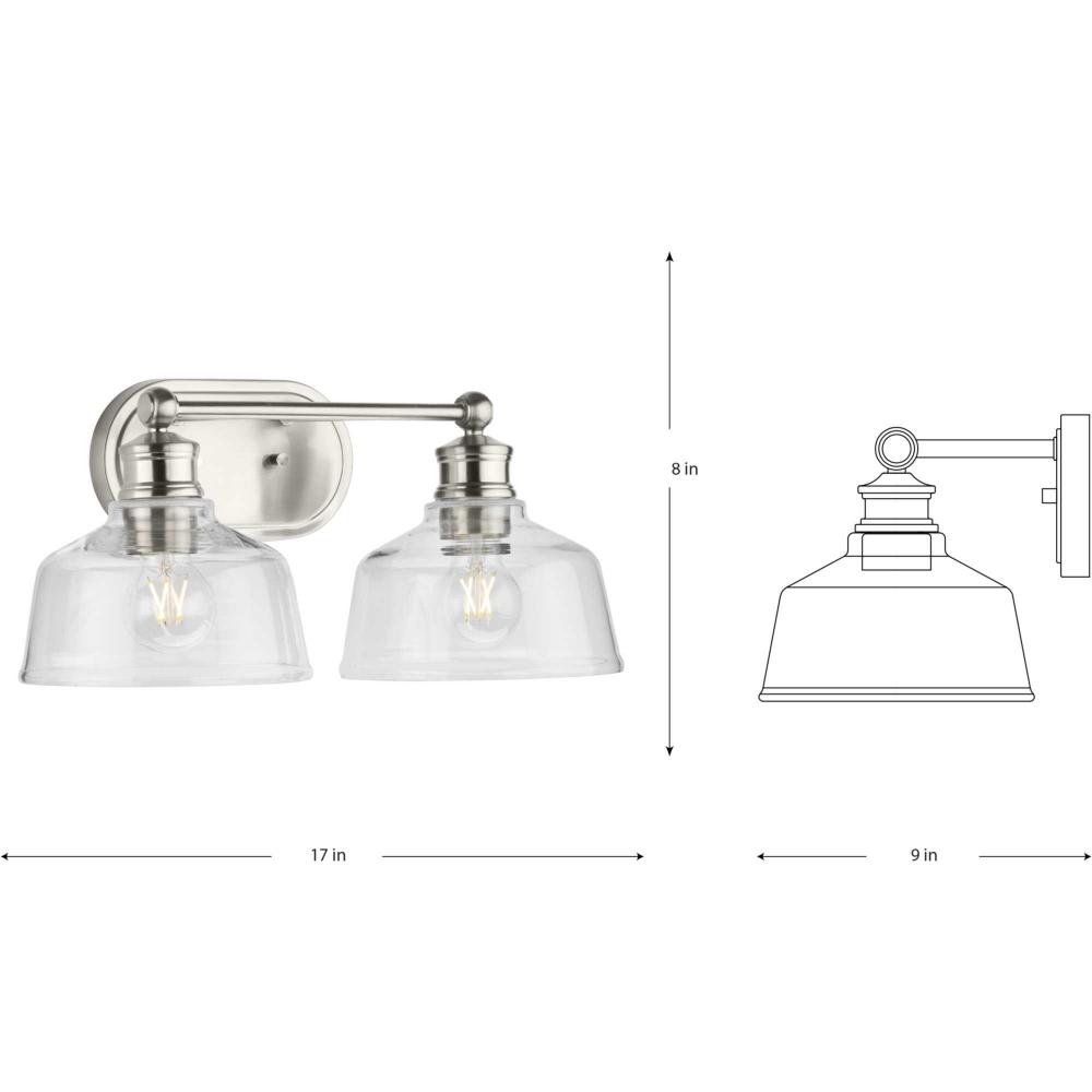 light lights lighting bath bathroom vanity fixture fixtures bath bathroom vanity above below mirror overhead up down brushed nickel silver gray grey farmhouse transitional country rustic led incandescent 60w dimmable bulbs clear glass