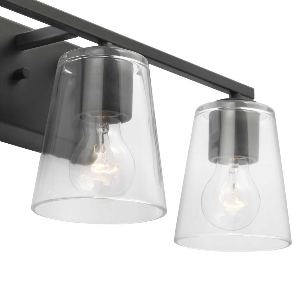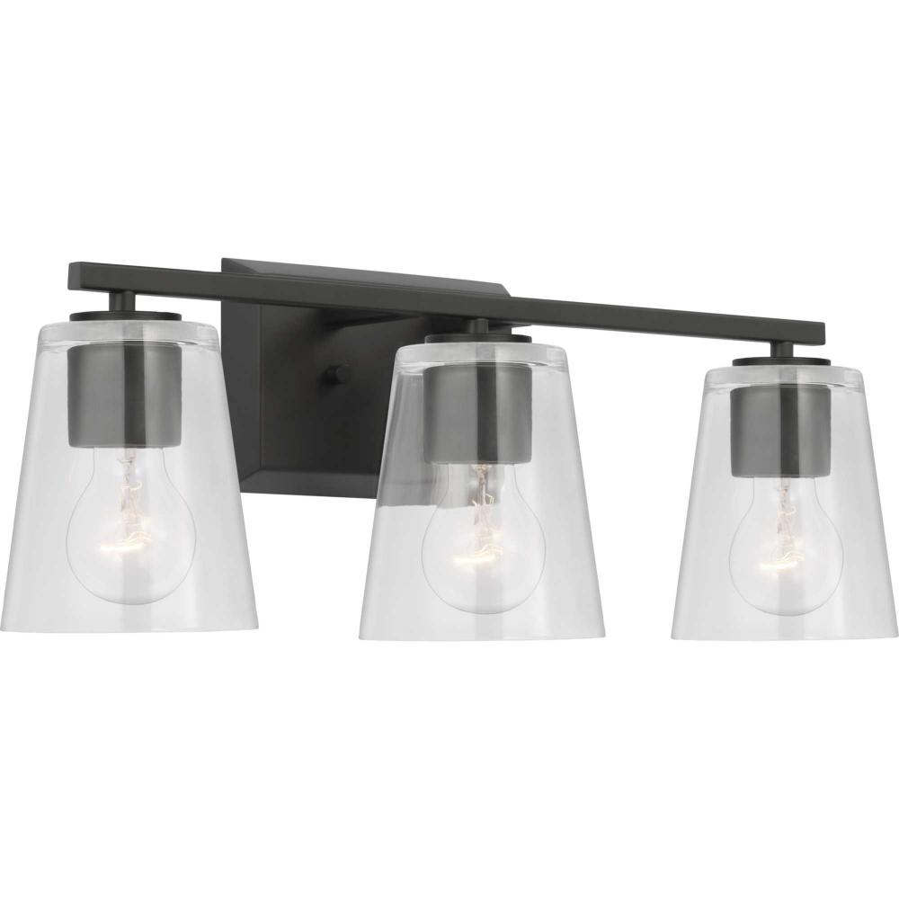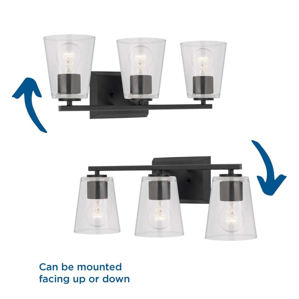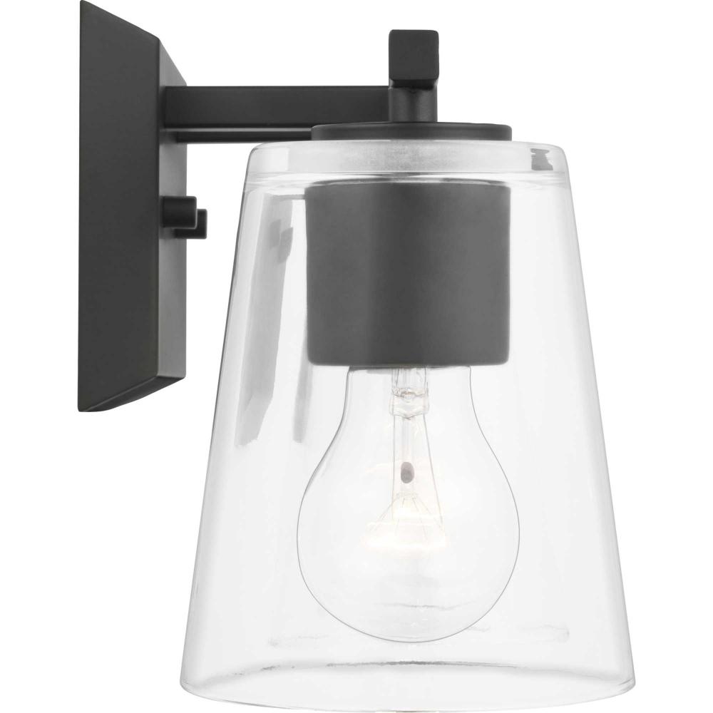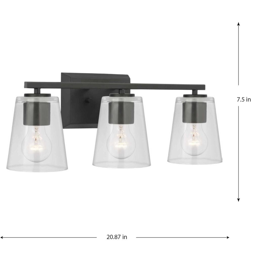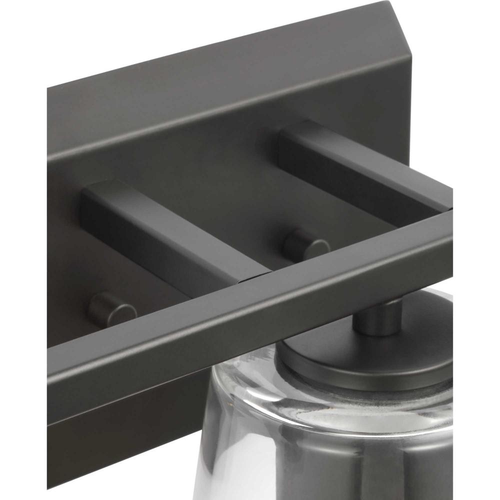 Elegantly extended, the Vertex Collection is composed of angular forms finished in crisp matte black to create a bold design that perfectly complements modern interiors. Glass shades delivers bright illumination to bathrooms and powder rooms in contemporary settings. This versatile fixture can be mounted up or down, increasing its design flexibility. It is cULus damp rated and has a one-year warranty to guarantee your complete satisfaction. Progress Lighting products offer exceptional quality, reliability, and functionality. .