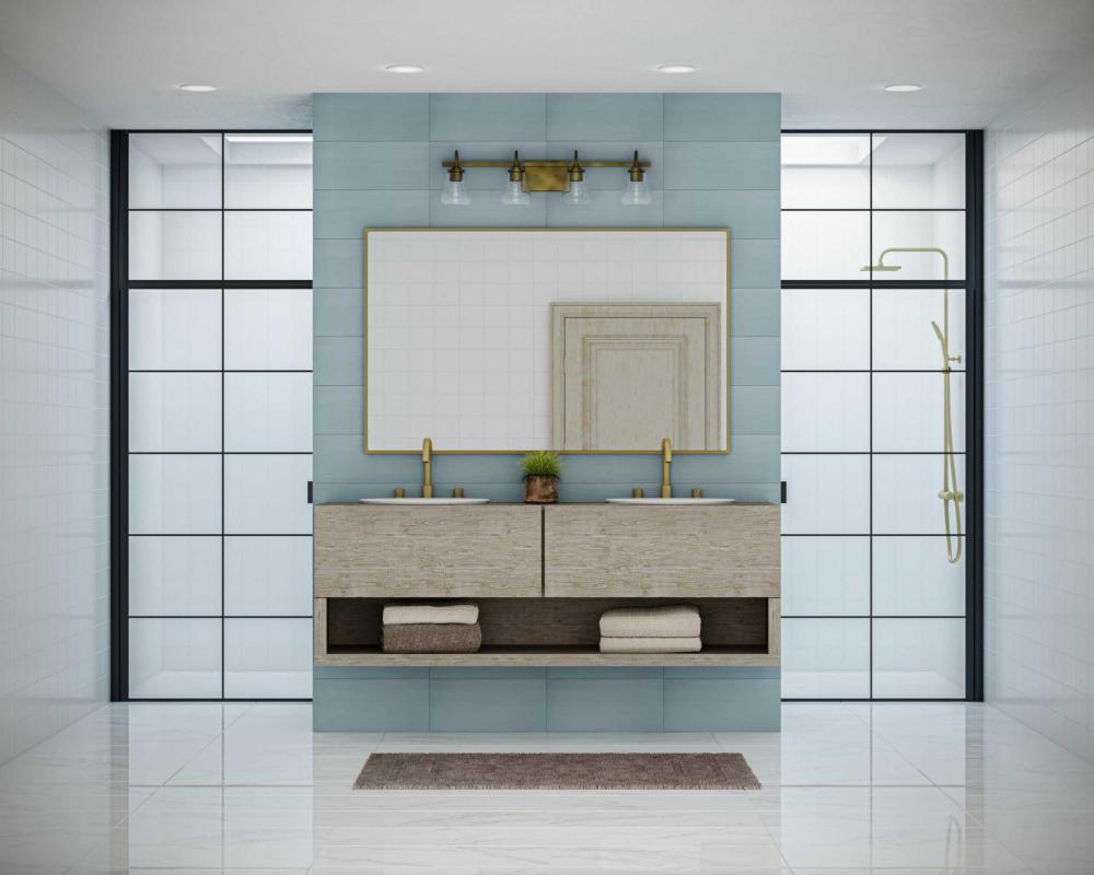 The fixture's simple style perfectly accents modern farmhouse bathrooms