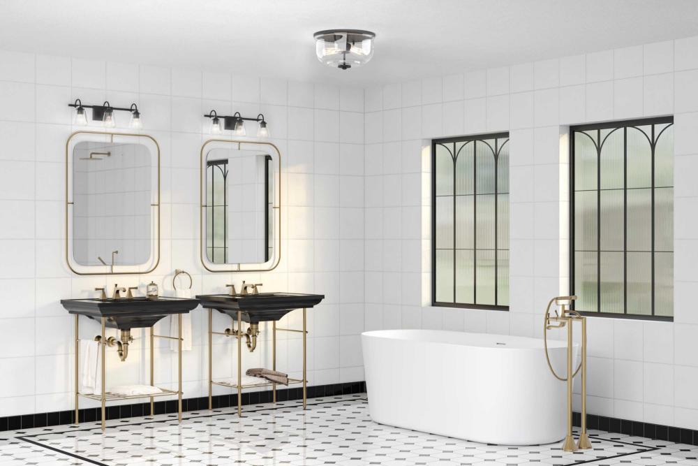 The fixture's simple style perfectly accents modern farmhouse bathrooms