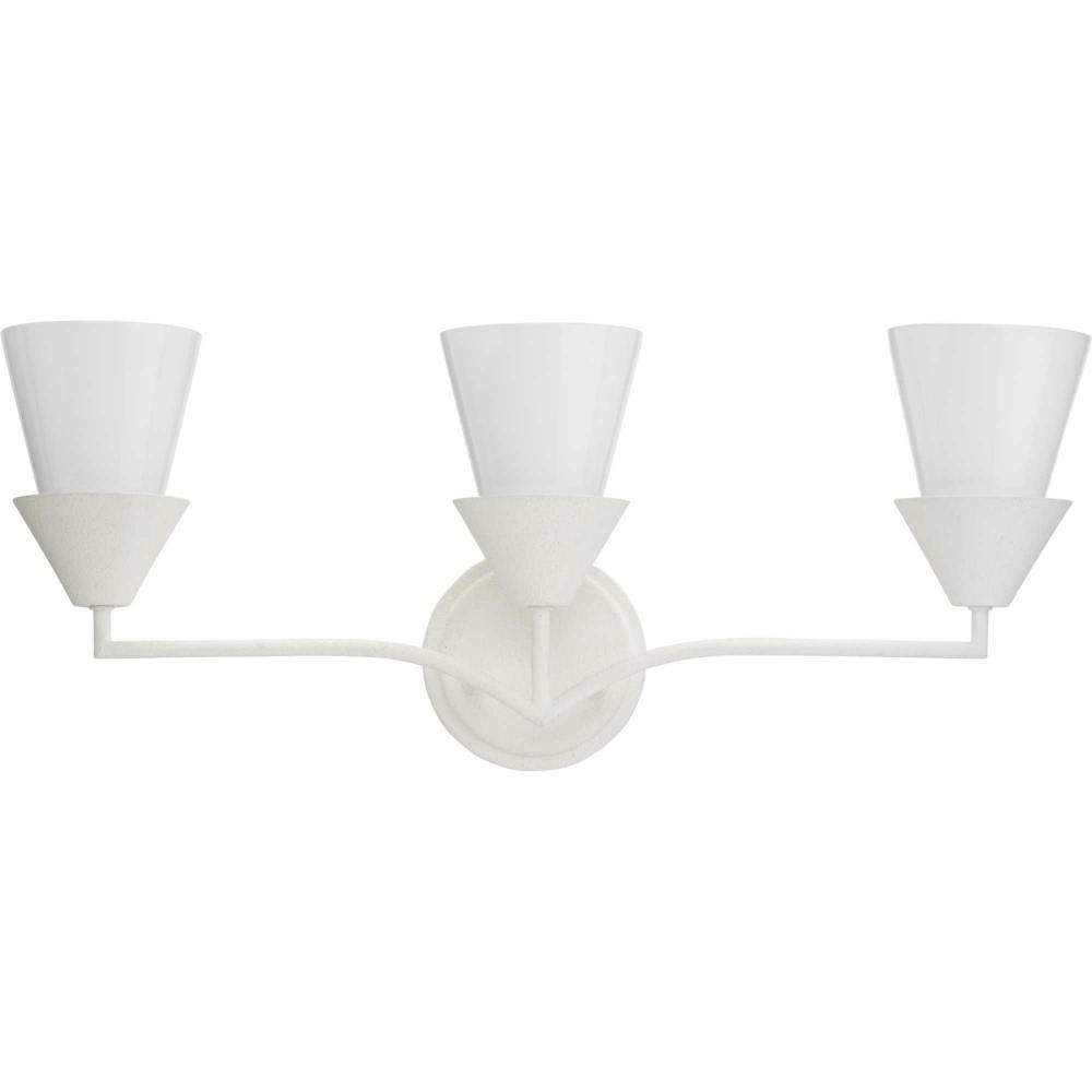 The Pinellas Vanity Light gets to the point with a modern expression of a timeless form. The signature dual conical motif coated in a beautiful White Plaster finish has the elements artfully nested together to provide a pleasing diffusion of light. This fixture is part of the Progress Lighting Design Series, a lighting collection offering fashionable styles and luxury lighting for the home.
