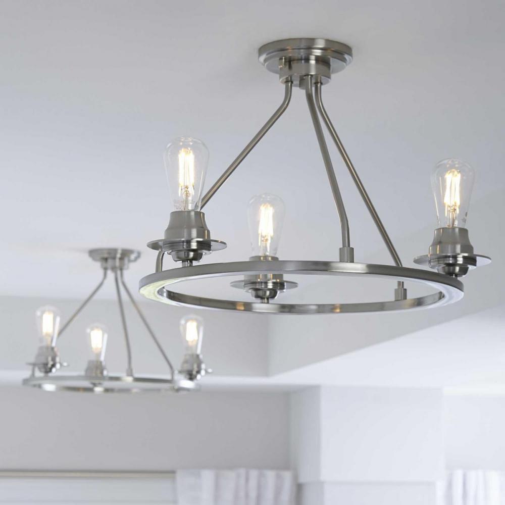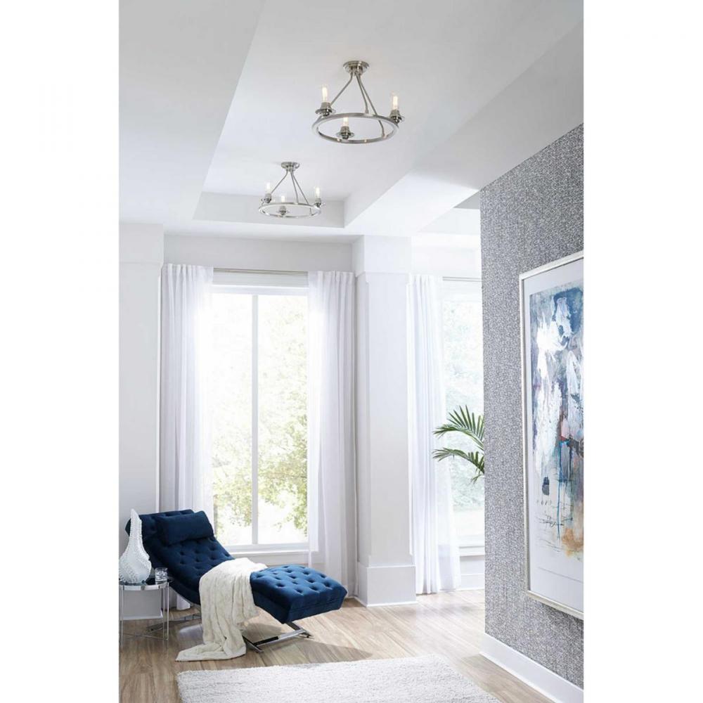 A new category of vintage modern fixtures takes center stage with this semi-flush, convertible fixture from one of our Design Series collections. Delicate details in a Brushed Nickel finish, create statement making focal pieces for a variety of interiors. Debut provides a fitting stage to feature nostalgic, vintage lamps. Glass accessory shades available in clear or frosted seeded finishes.