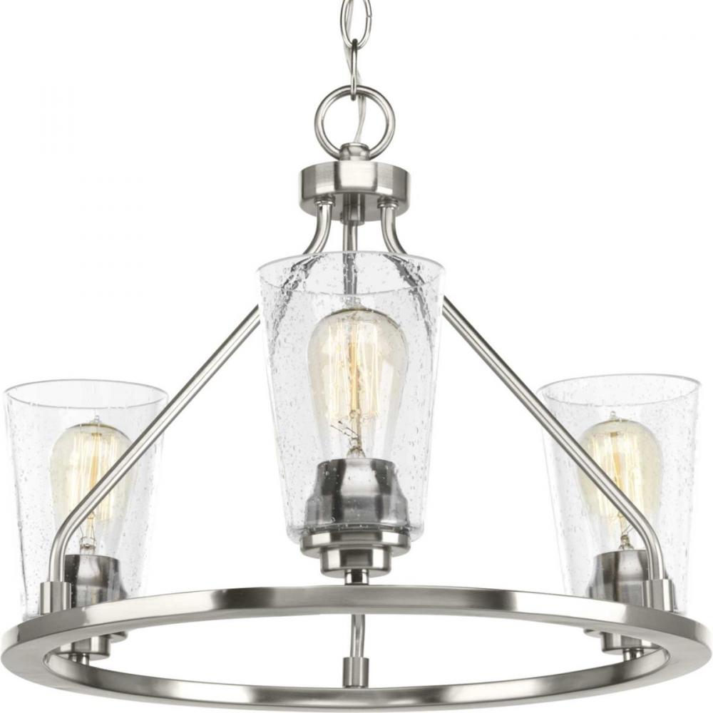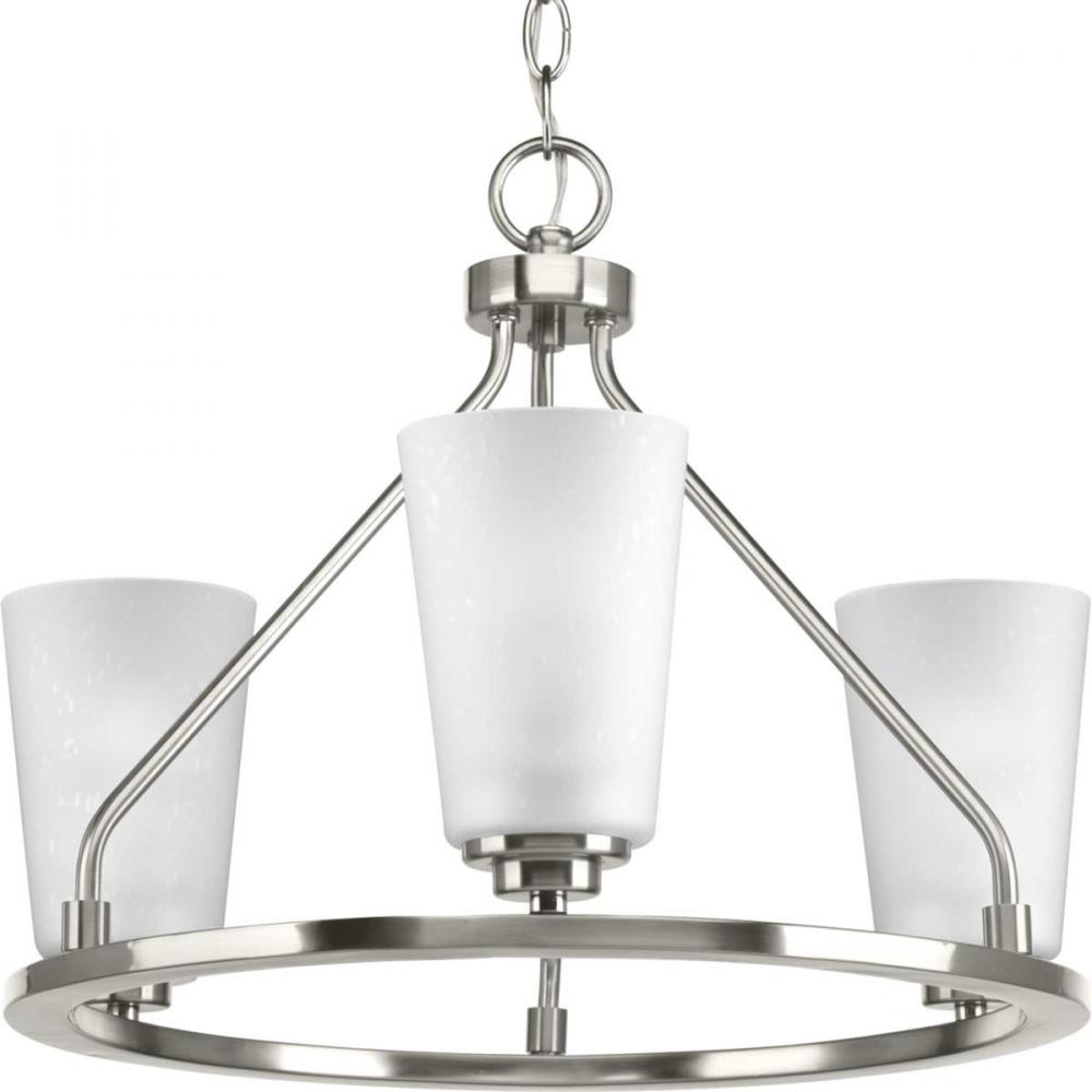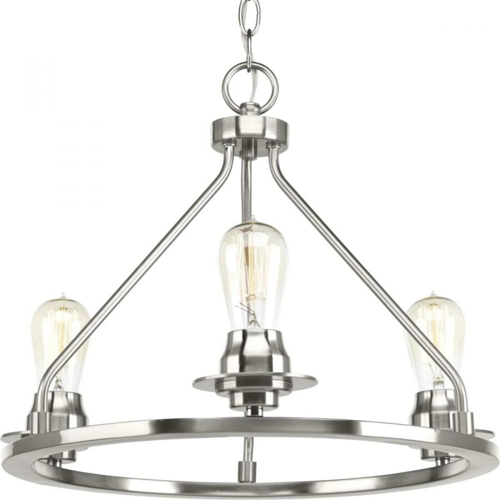 Brushed Nickel finish.;A uniquely vintage modern feel.;Delicate details with a warm finish.;Makes a great statement piece for a variety of interiors.;Glass accessory shades in clear (P860003-001) or frosted (P860002-001) seeded finishes are available.;Chai