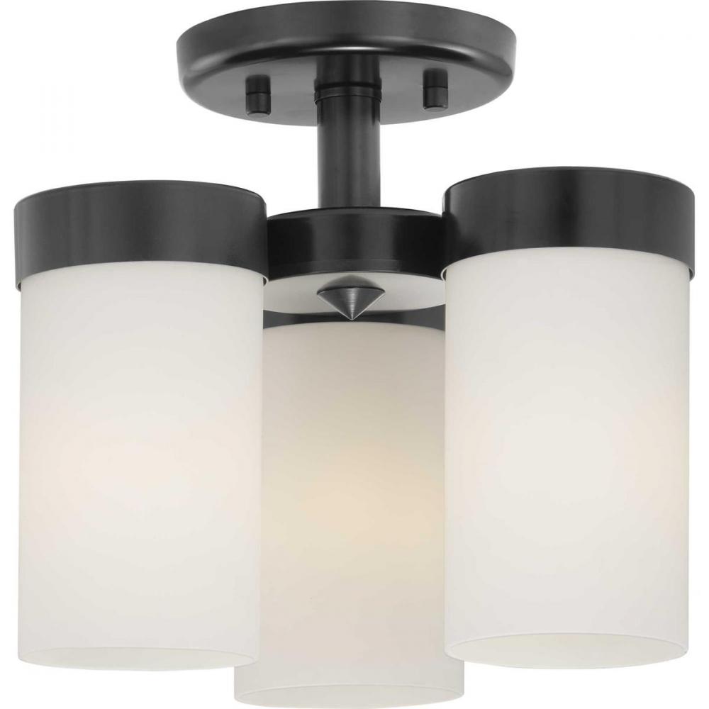 The three-light semi-flush is sleek and unobtrusive like a cluster-stud earring, adding just enough personality to a contemporary room;Etched-glass white shades provide a warm glow;These fixtures work well in dressing rooms, bathrooms, hallways, home offic